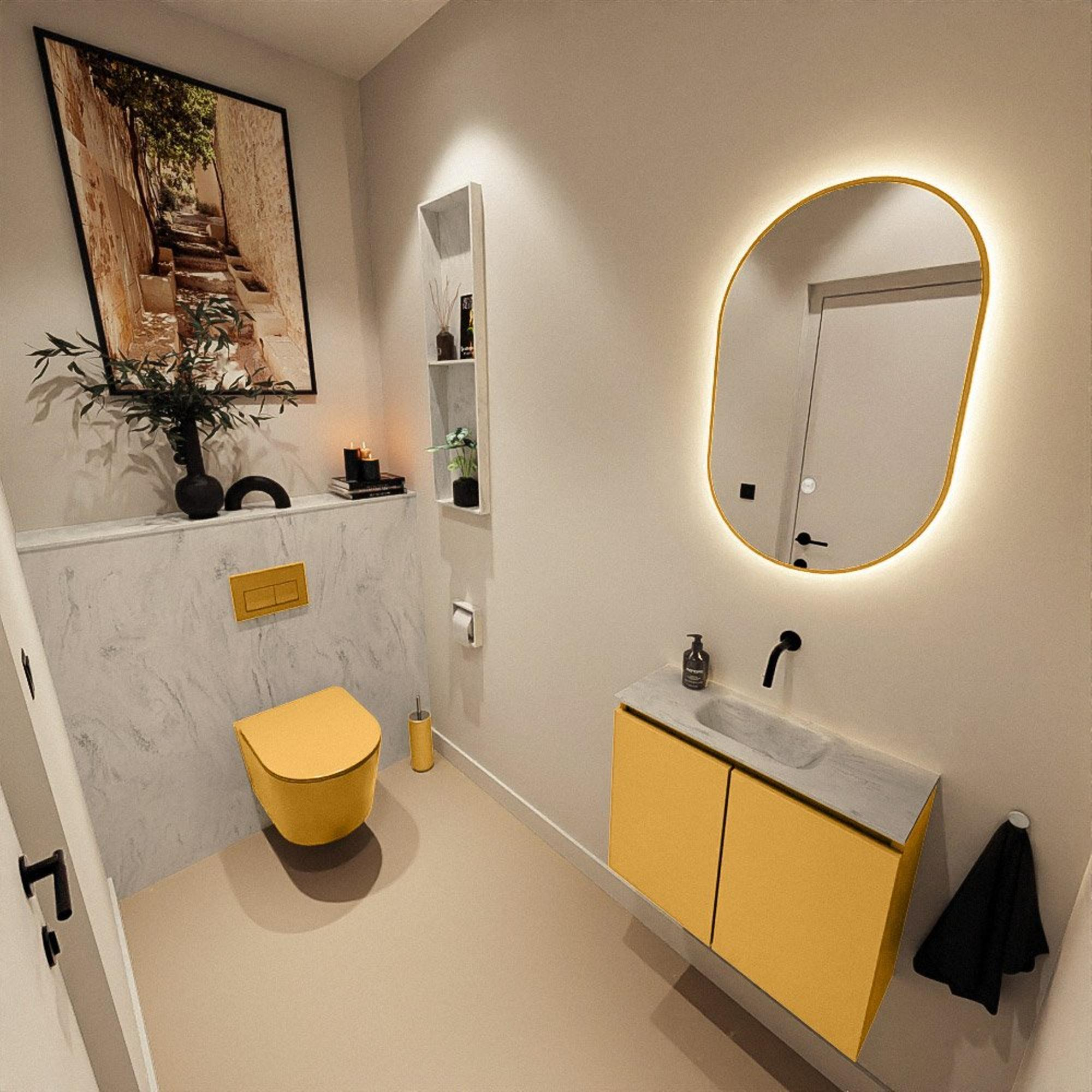 MONDIAZ TURE-DLUX 60cm toiletmeubel Ocher. EDEN wastafel Opalo positie midden. Zonder kraangat.