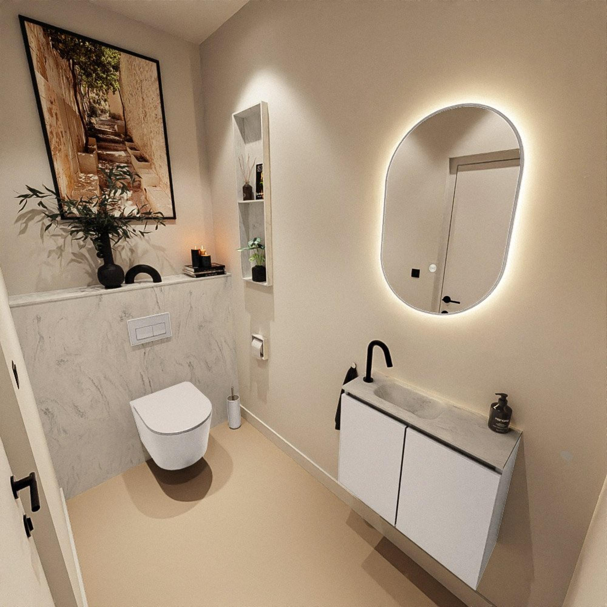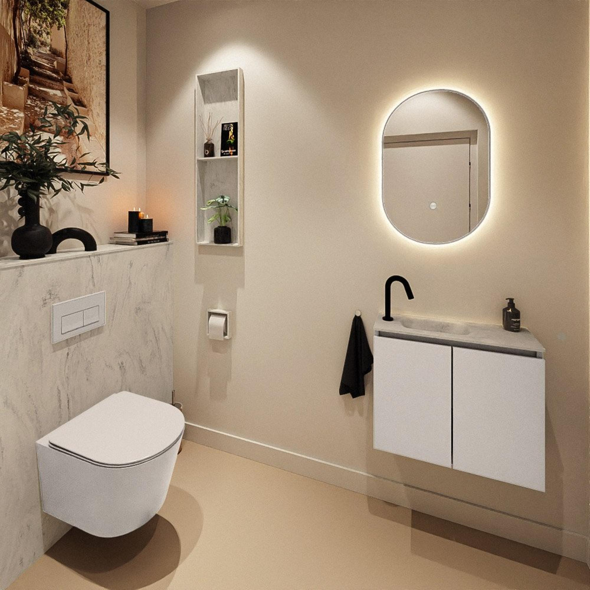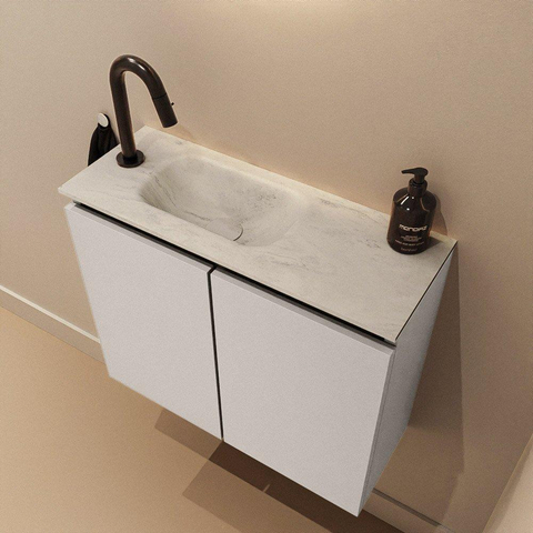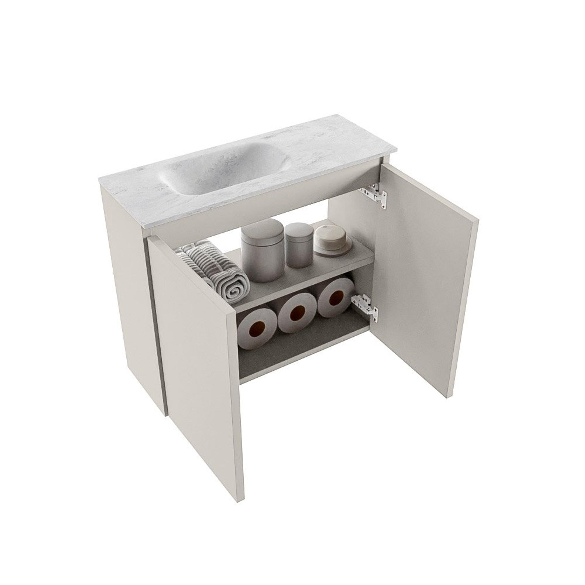 MONDIAZ TURE-DLUX 60cm toiletmeubel Linen. EDEN wastafel Opalo positie links. Met 1 kraangat.