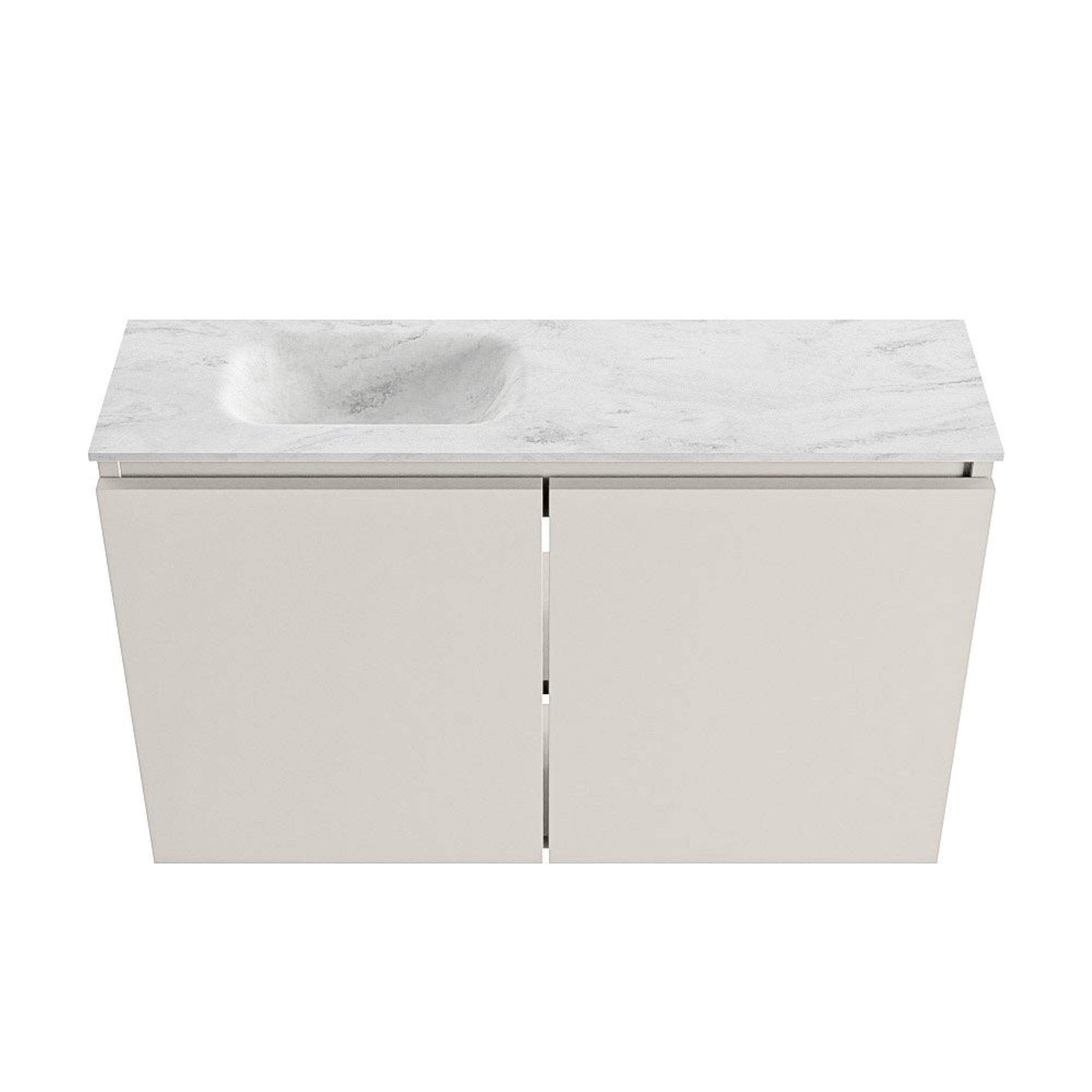 MONDIAZ TURE-DLUX 80cm toiletmeubel Linen. EDEN wastafel Opalo positie links. Met 1 kraangat.