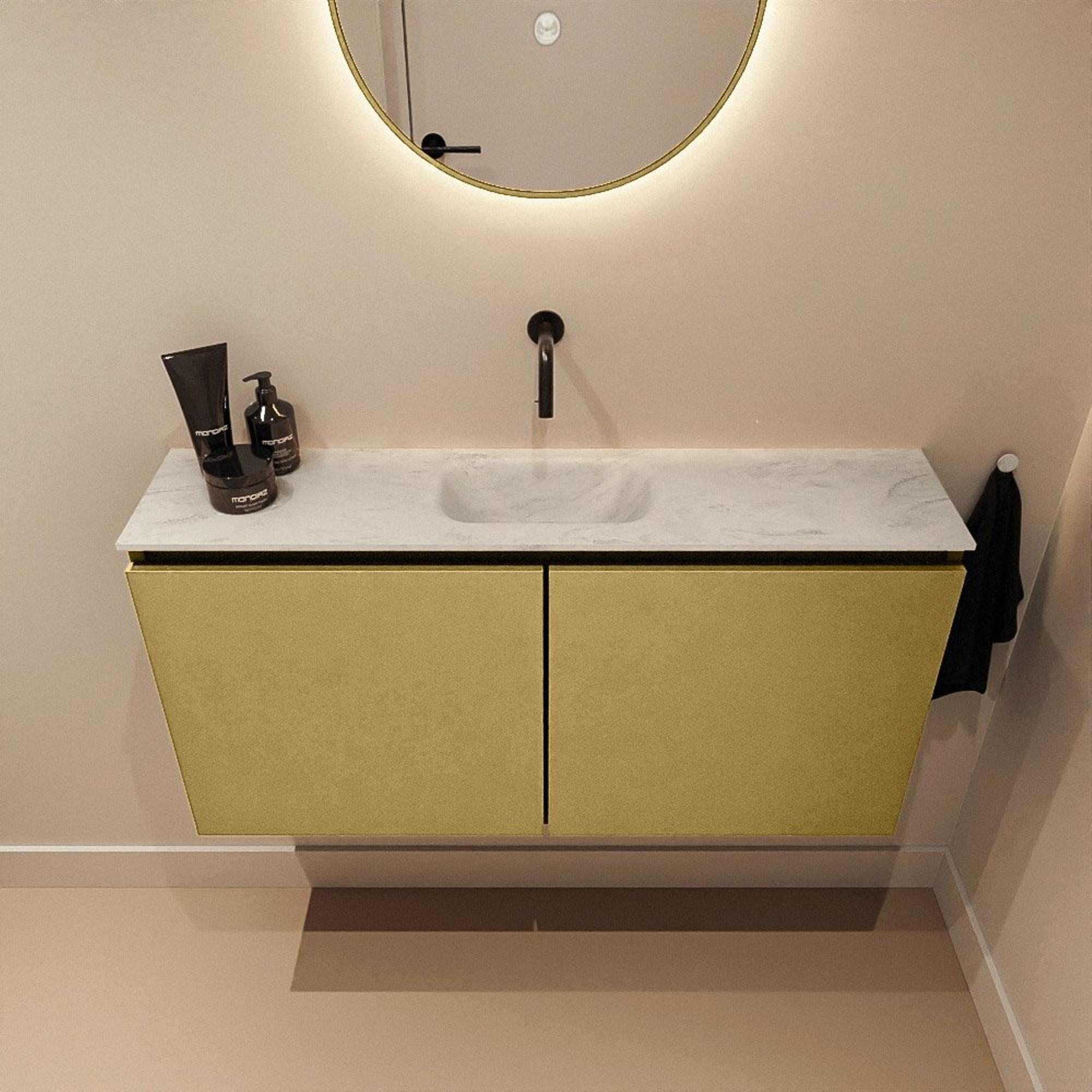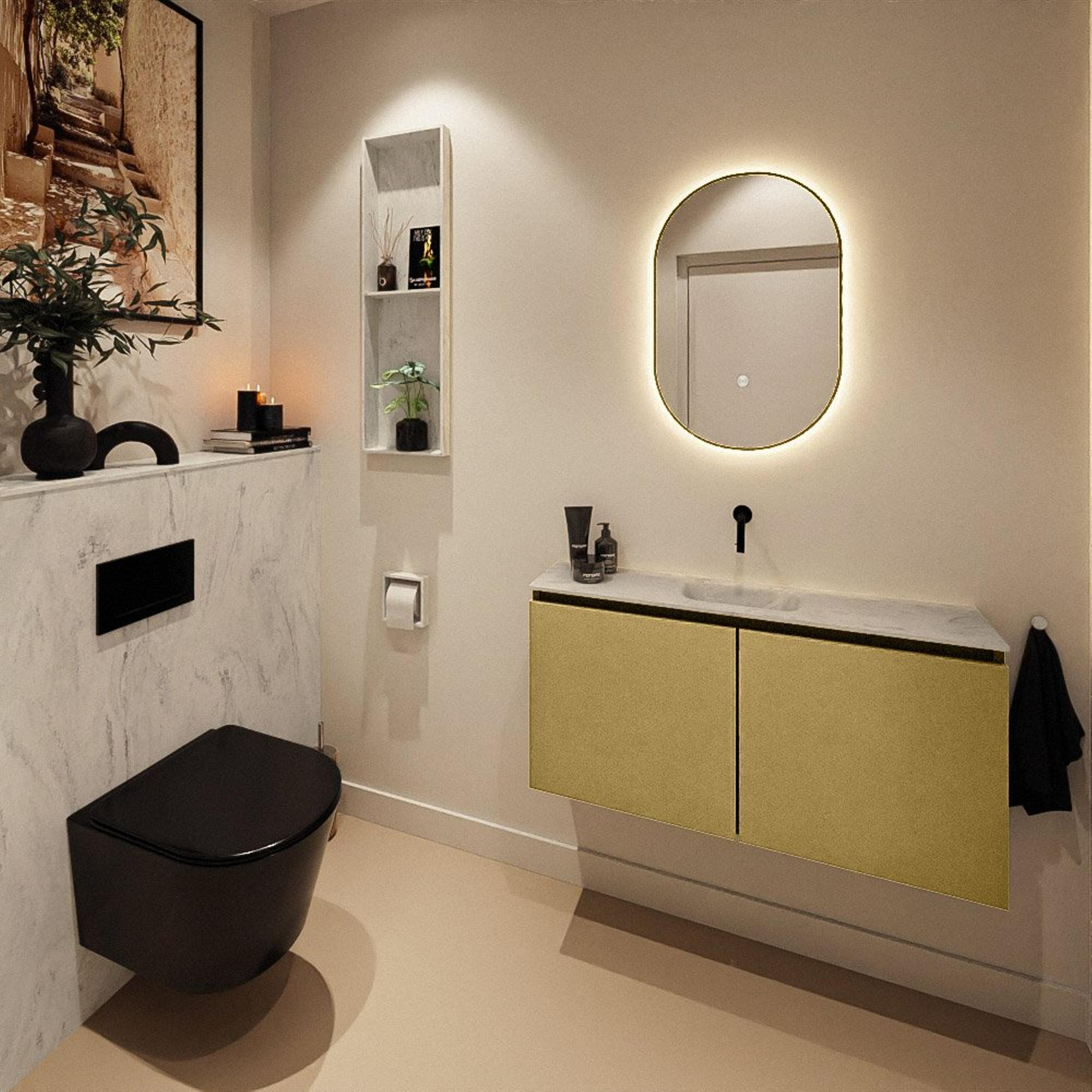MONDIAZ TURE-DLUX 100cm toiletmeubel Oro. EDEN wastafel Opalo positie midden. Zonder kraangat.