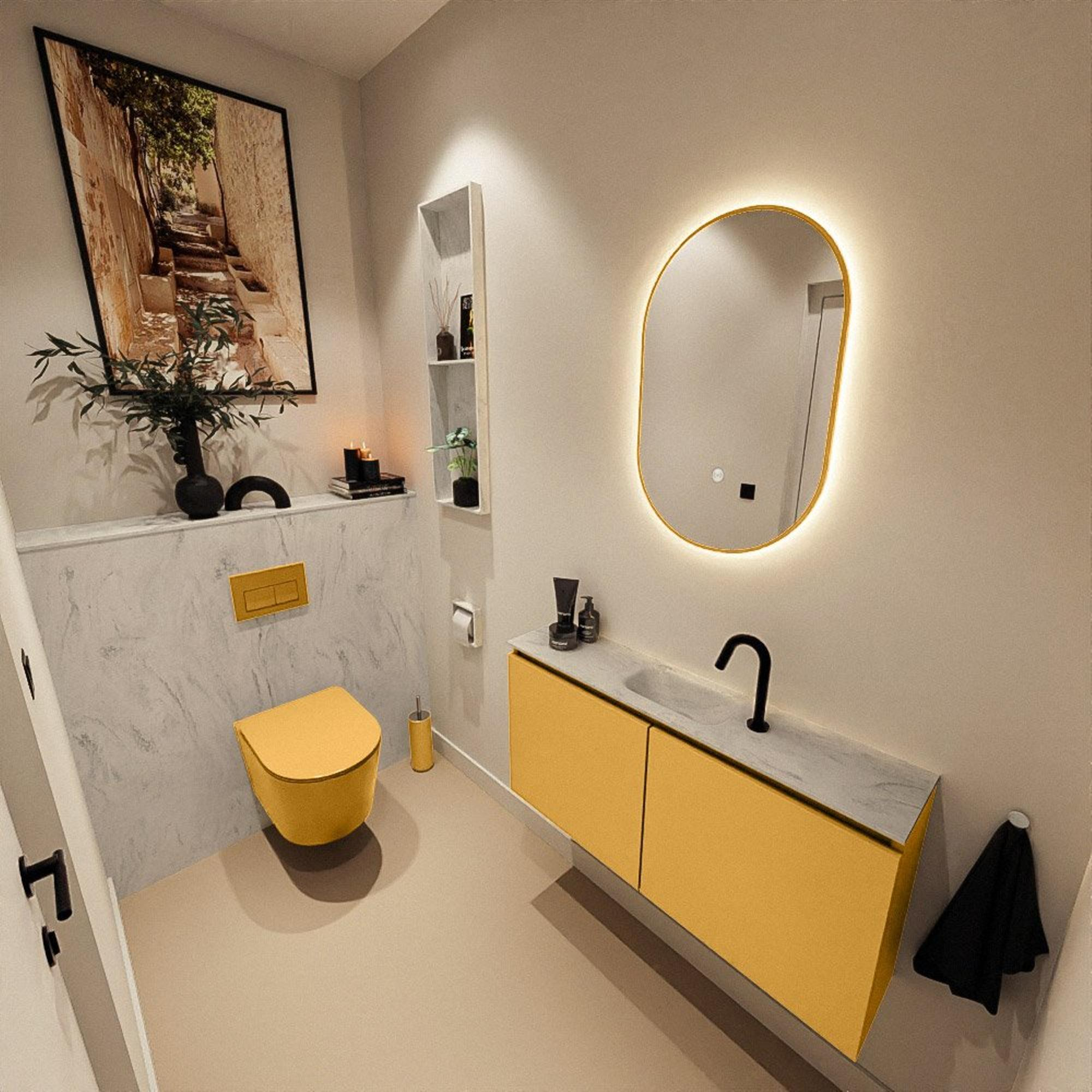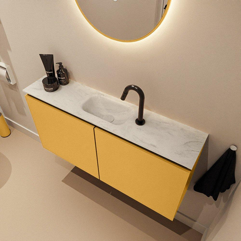 MONDIAZ TURE-DLUX 100cm toiletmeubel Ocher. EDEN wastafel Opalo positie midden. Met 1 kraangat.