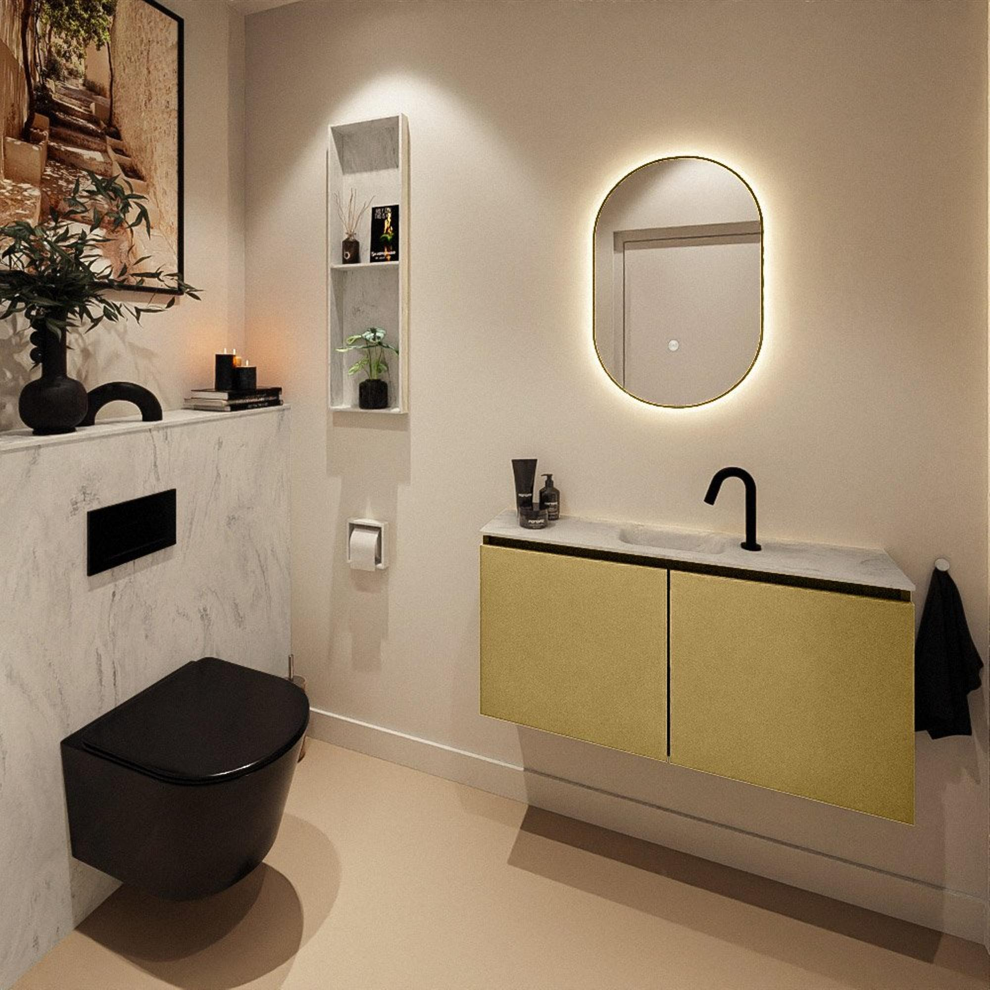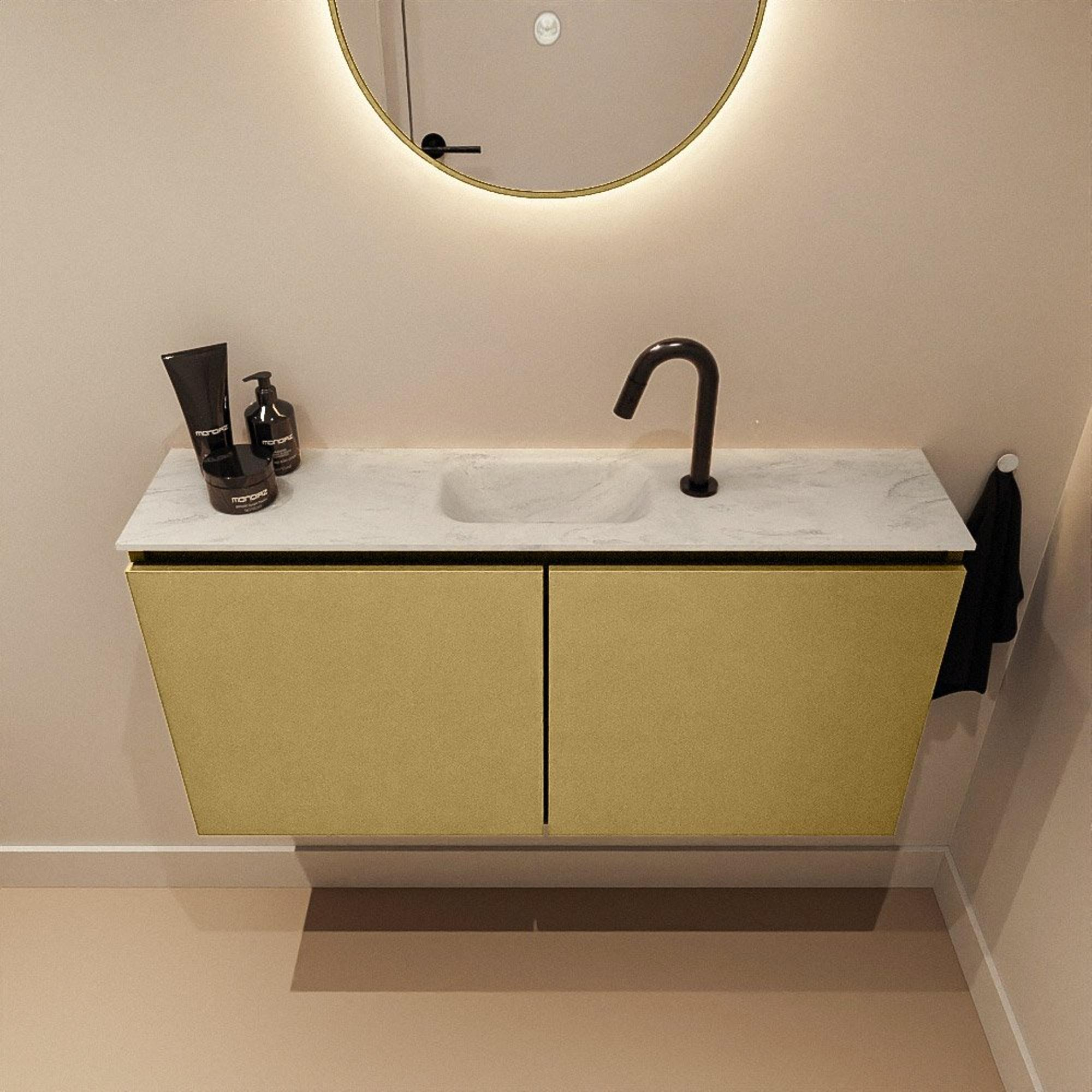 MONDIAZ TURE-DLUX 100cm toiletmeubel Oro. EDEN wastafel Opalo positie midden. Met 1 kraangat.