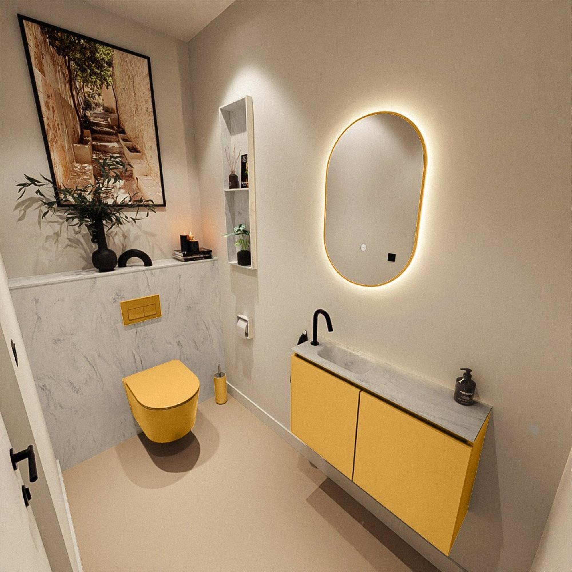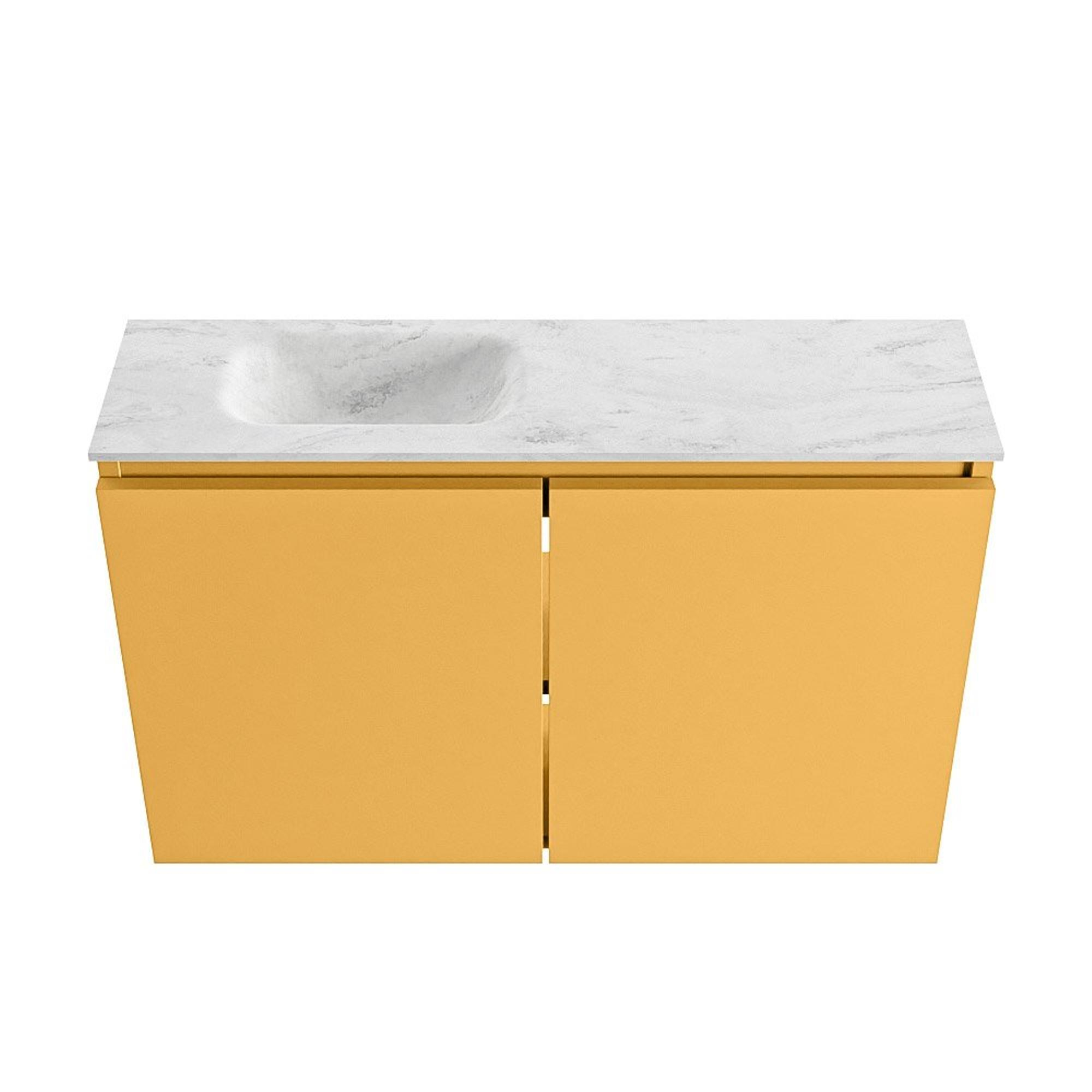 MONDIAZ TURE-DLUX 80cm toiletmeubel Ocher. EDEN wastafel Opalo positie links. Met 1 kraangat.