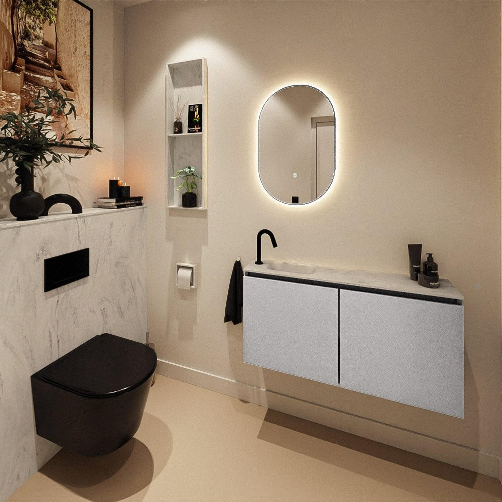 MONDIAZ TURE-DLUX 100cm toiletmeubel Plata. EDEN wastafel Opalo positie links. Met 1 kraangat.