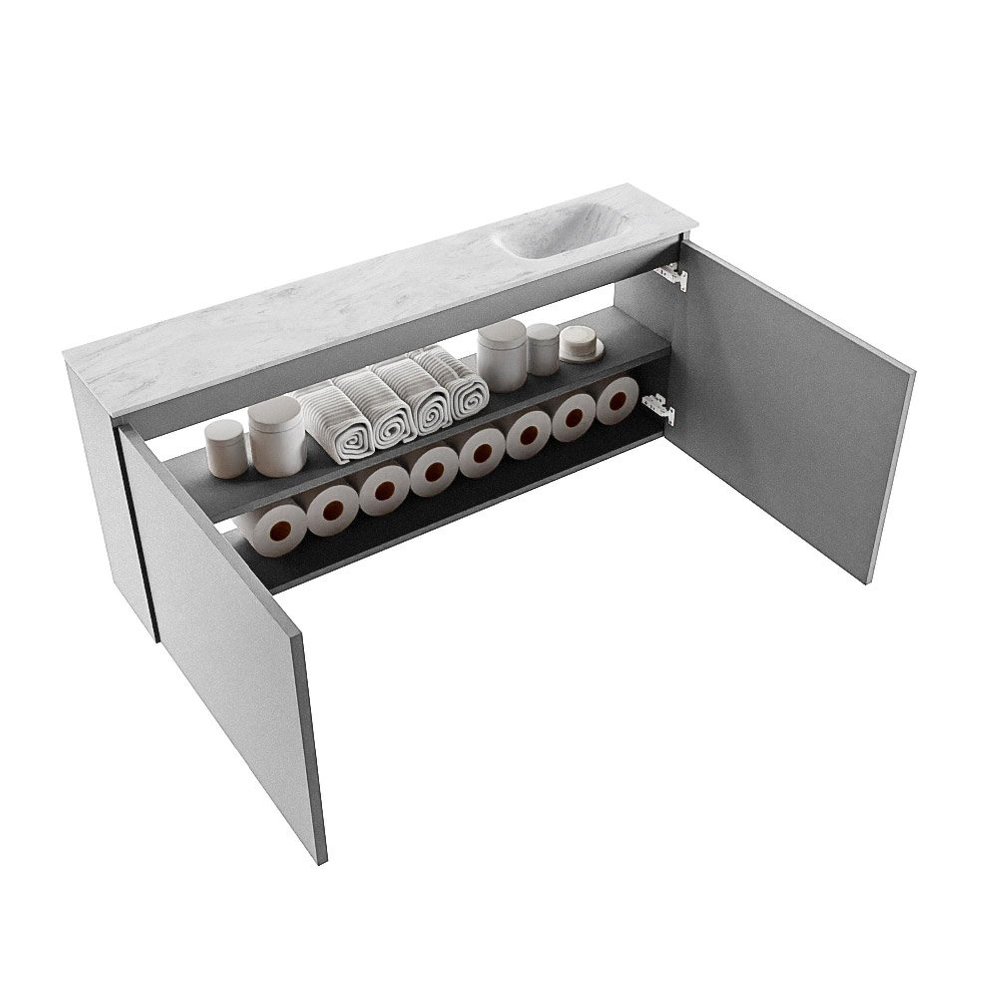 MONDIAZ TURE-DLUX 120cm toiletmeubel Plata. EDEN wastafel Opalo positie rechts. Zonder kraangat.