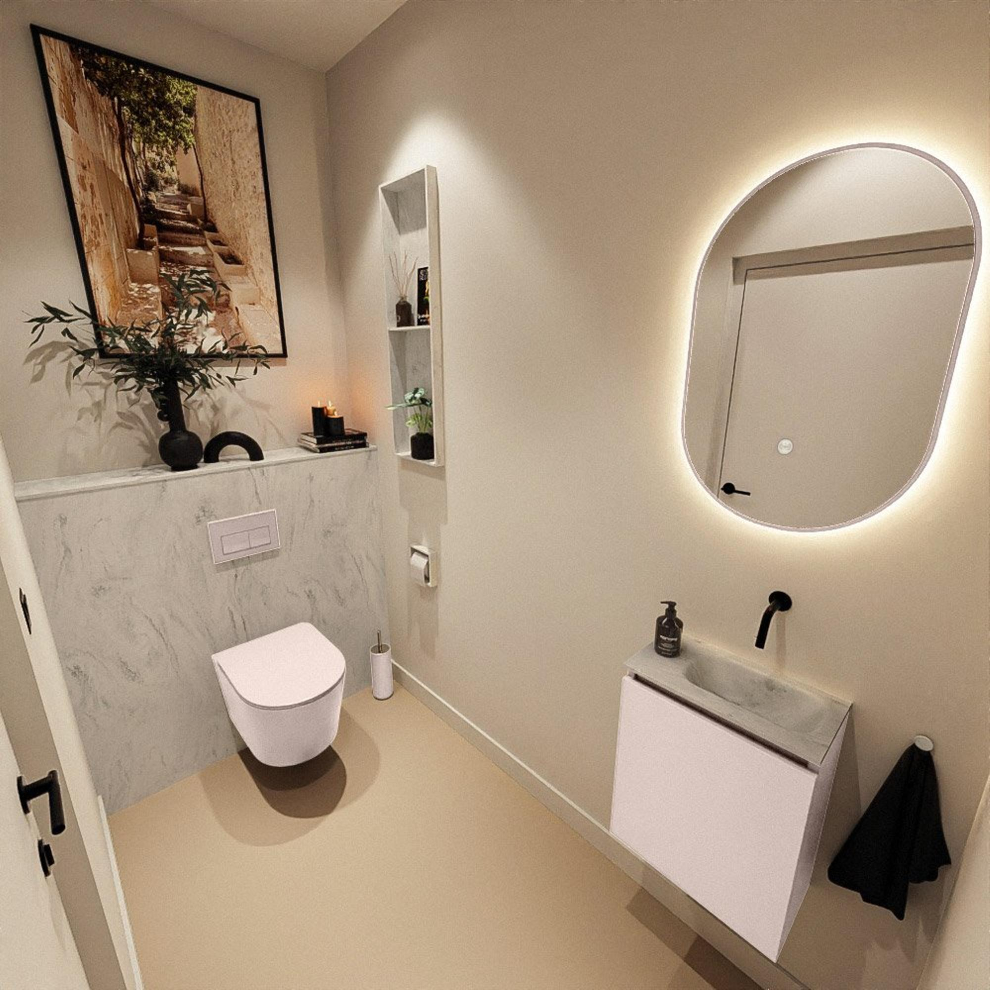 MONDIAZ TURE-DLUX 40cm toiletmeubel Rosee. EDEN wastafel Opalo positie rechts. Zonder kraangat.