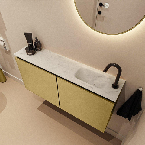MONDIAZ TURE-DLUX 100cm toiletmeubel Oro. EDEN wastafel Opalo positie rechts. Met 1 kraangat.