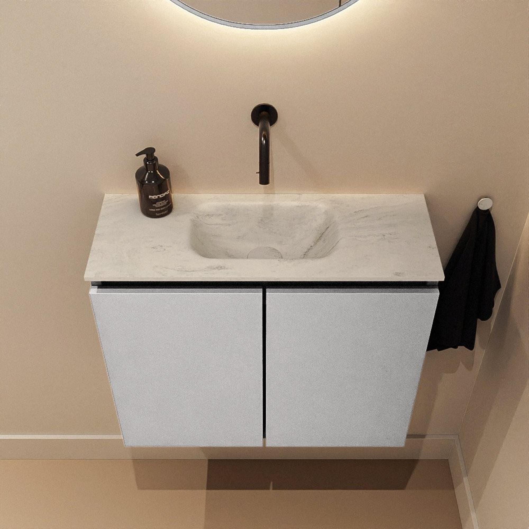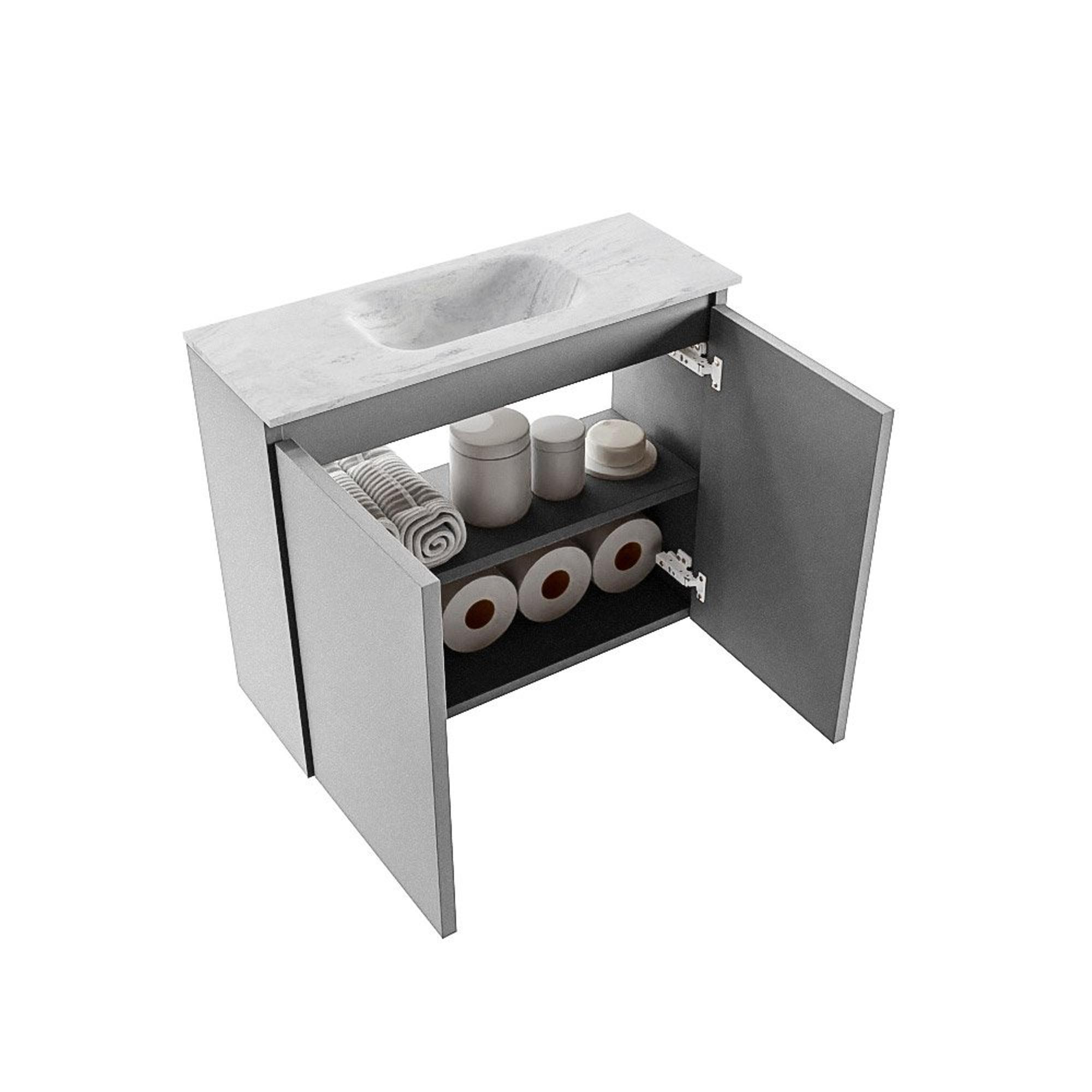MONDIAZ TURE-DLUX 60cm toiletmeubel Plata. EDEN wastafel Opalo positie midden. Zonder kraangat.