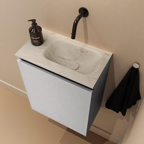 MONDIAZ TURE-DLUX 40cm toiletmeubel Plata. EDEN wastafel Opalo positie rechts. Zonder kraangat.