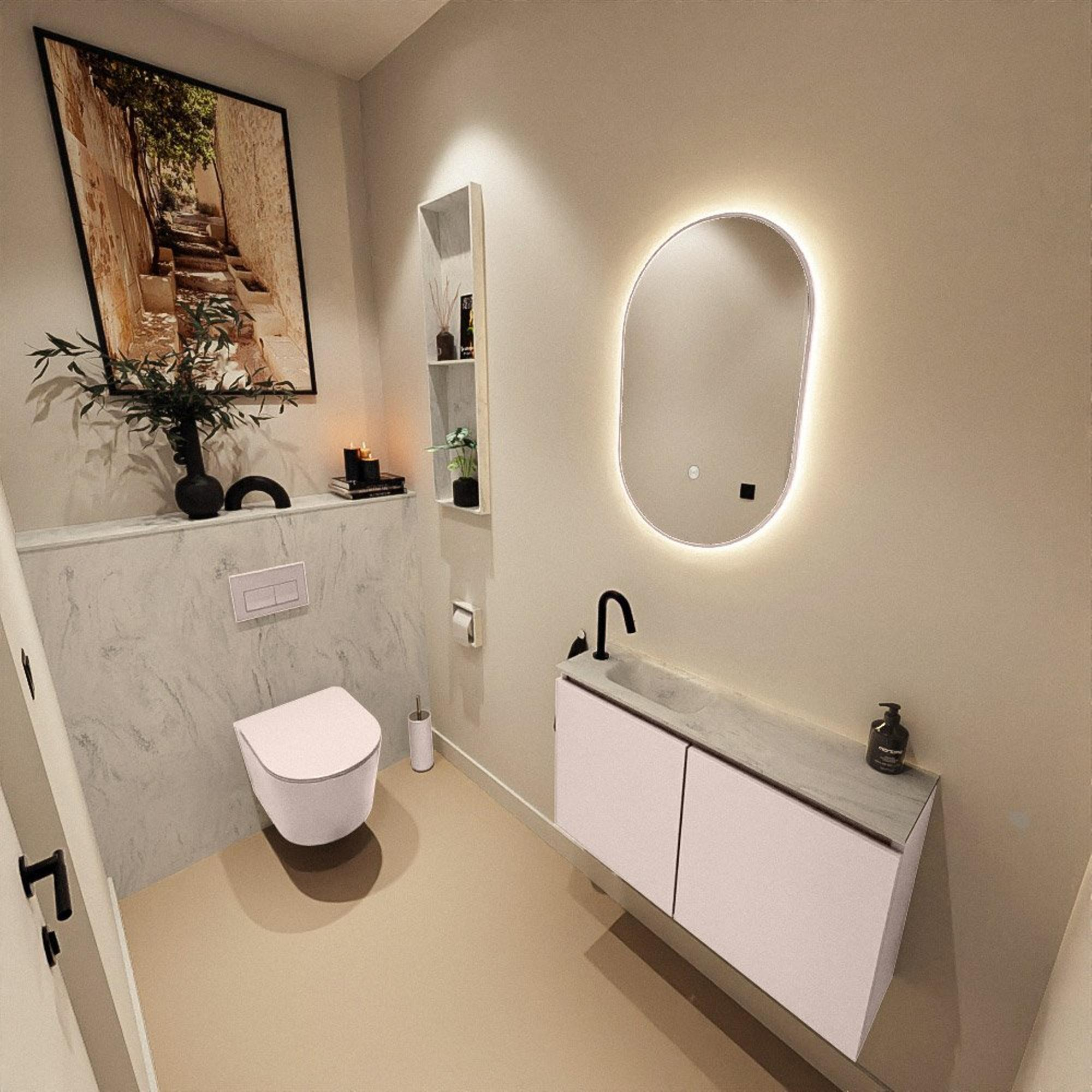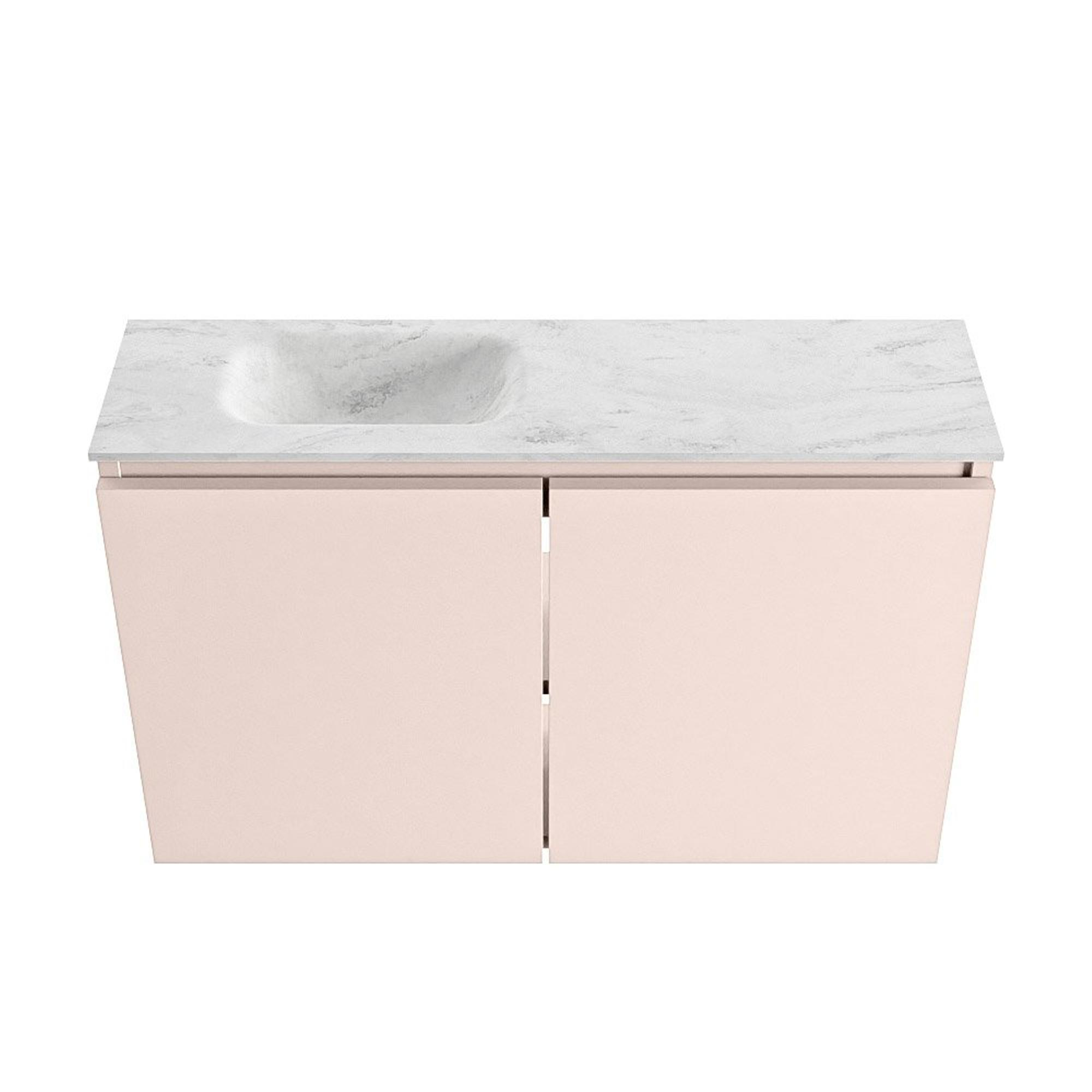 MONDIAZ TURE-DLUX 80cm toiletmeubel Rosee. EDEN wastafel Opalo positie links. Met 1 kraangat.