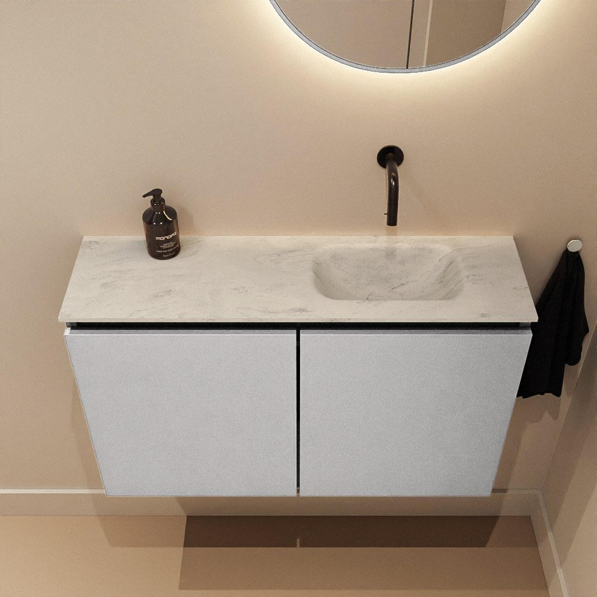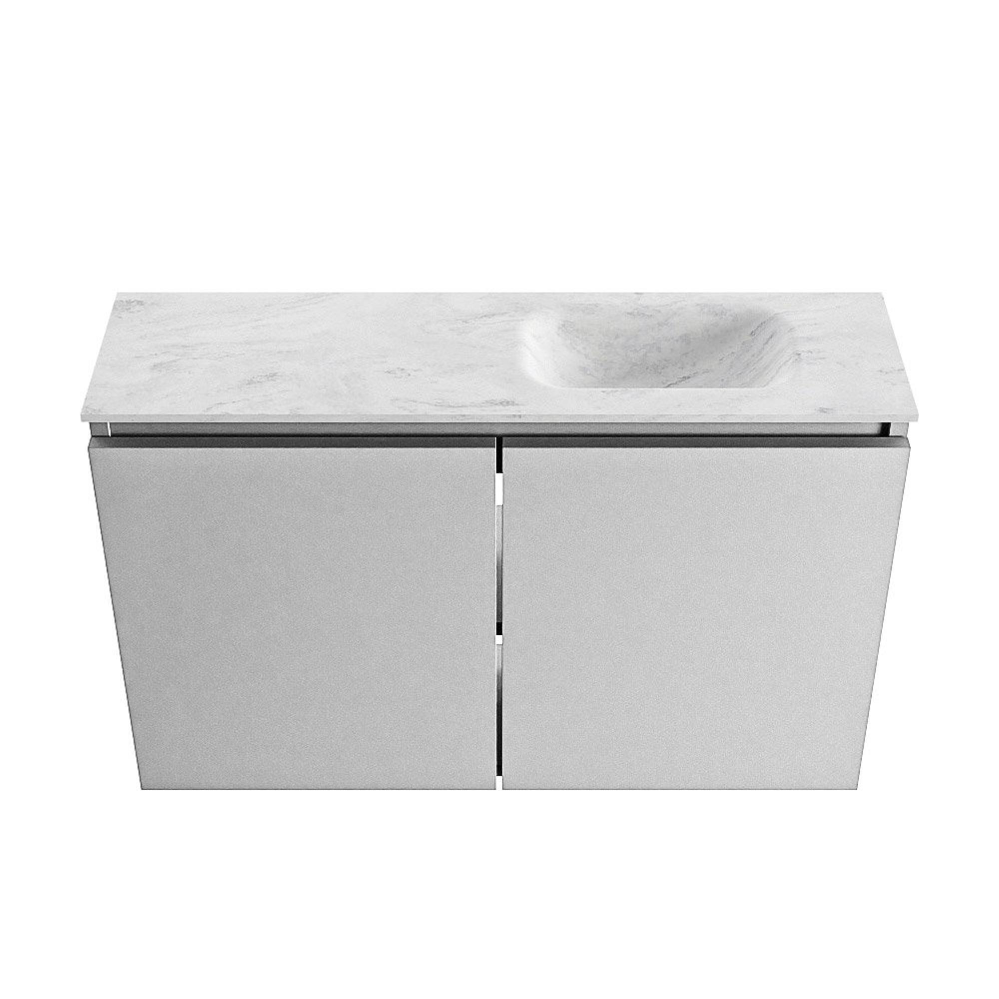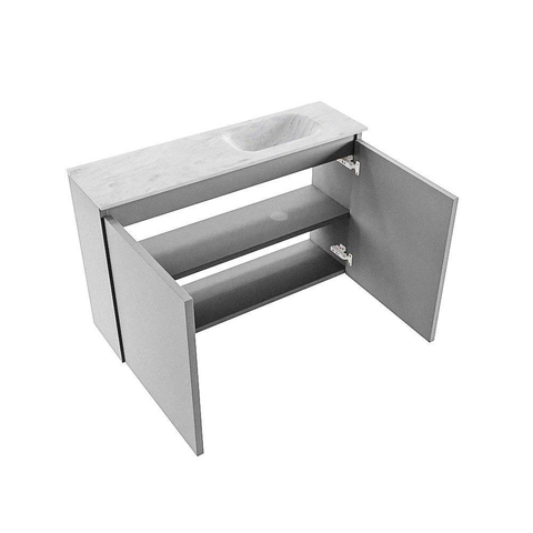 MONDIAZ TURE-DLUX 80cm toiletmeubel Plata. EDEN wastafel Opalo positie rechts. Zonder kraangat.