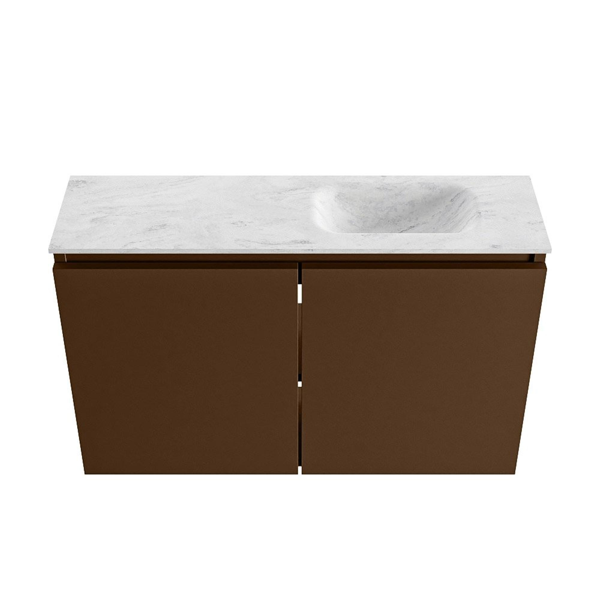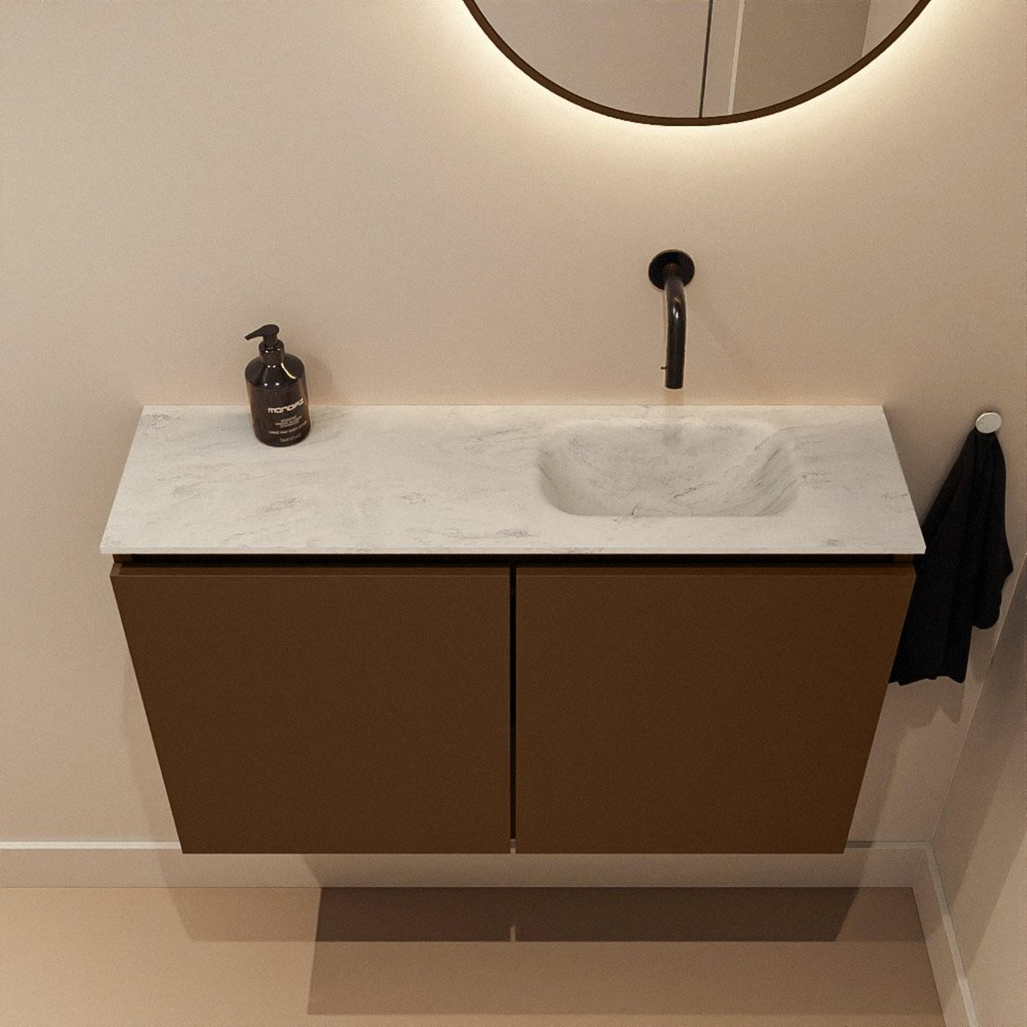 MONDIAZ TURE-DLUX 80cm toiletmeubel Rust. EDEN wastafel Opalo positie rechts. Zonder kraangat.