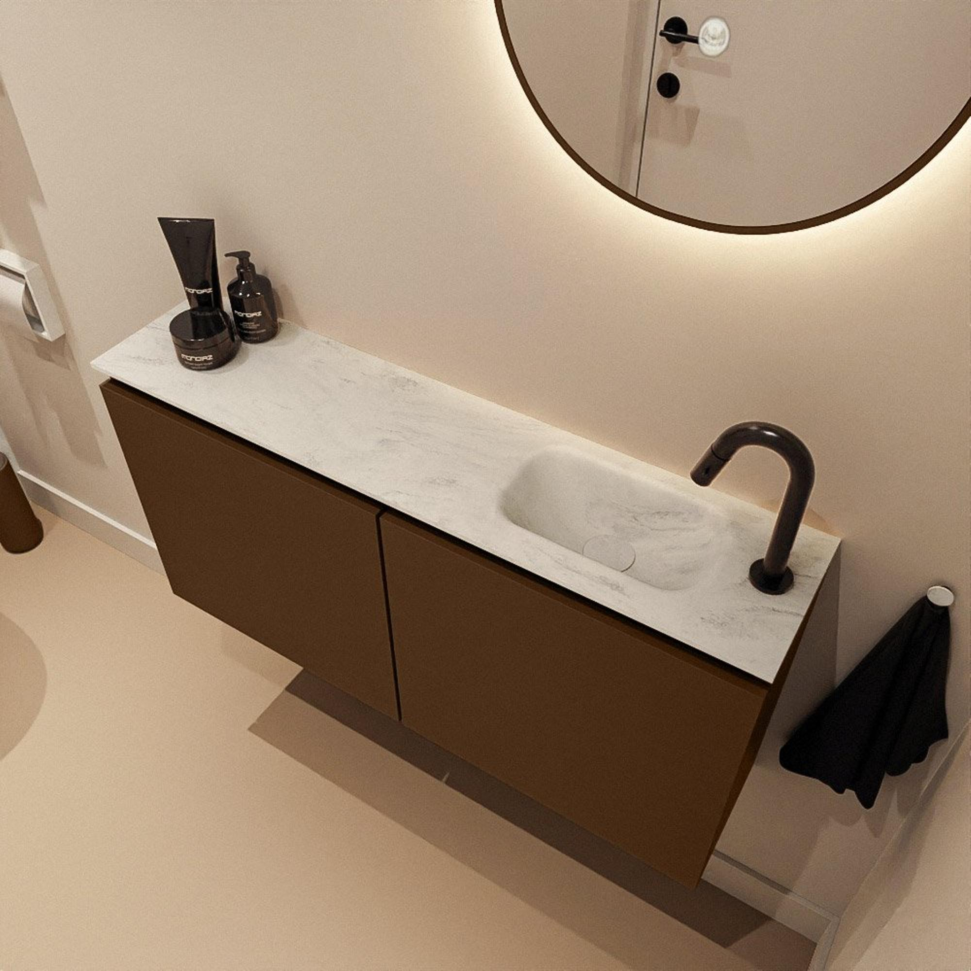 MONDIAZ TURE-DLUX 100cm toiletmeubel Rust. EDEN wastafel Opalo positie rechts. Met 1 kraangat.