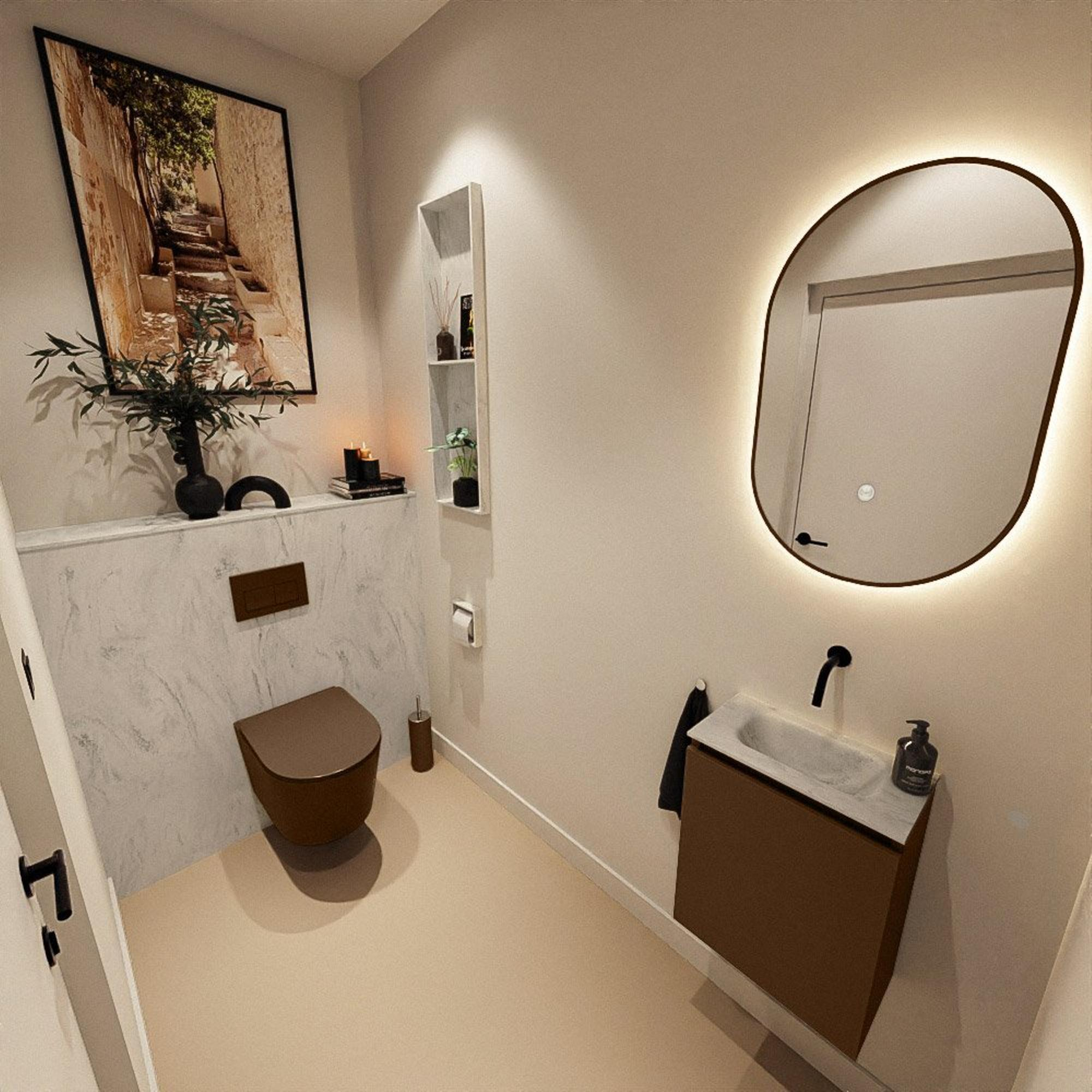 MONDIAZ TURE-DLUX 40cm toiletmeubel Rust. EDEN wastafel Opalo positie midden. Zonder kraangat.