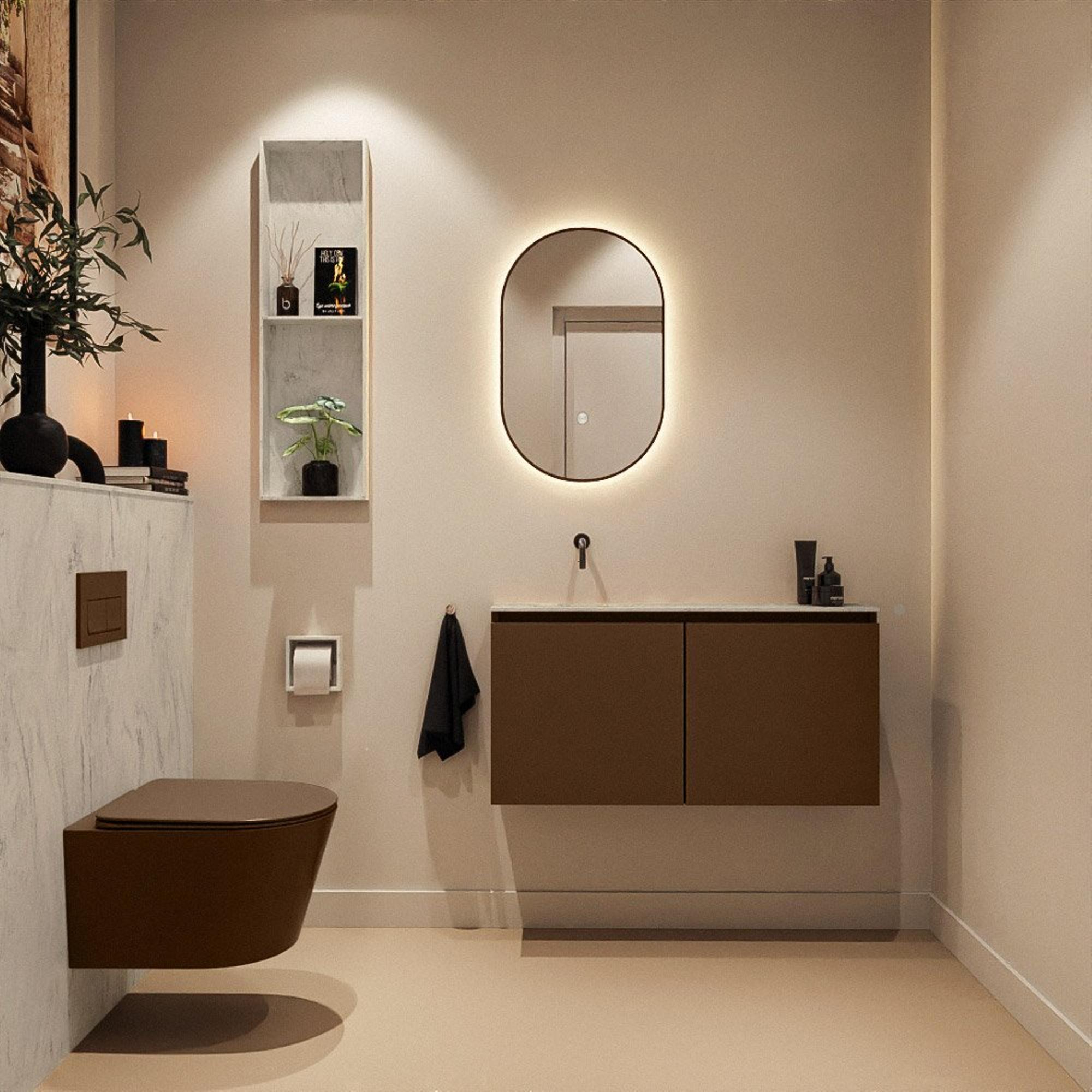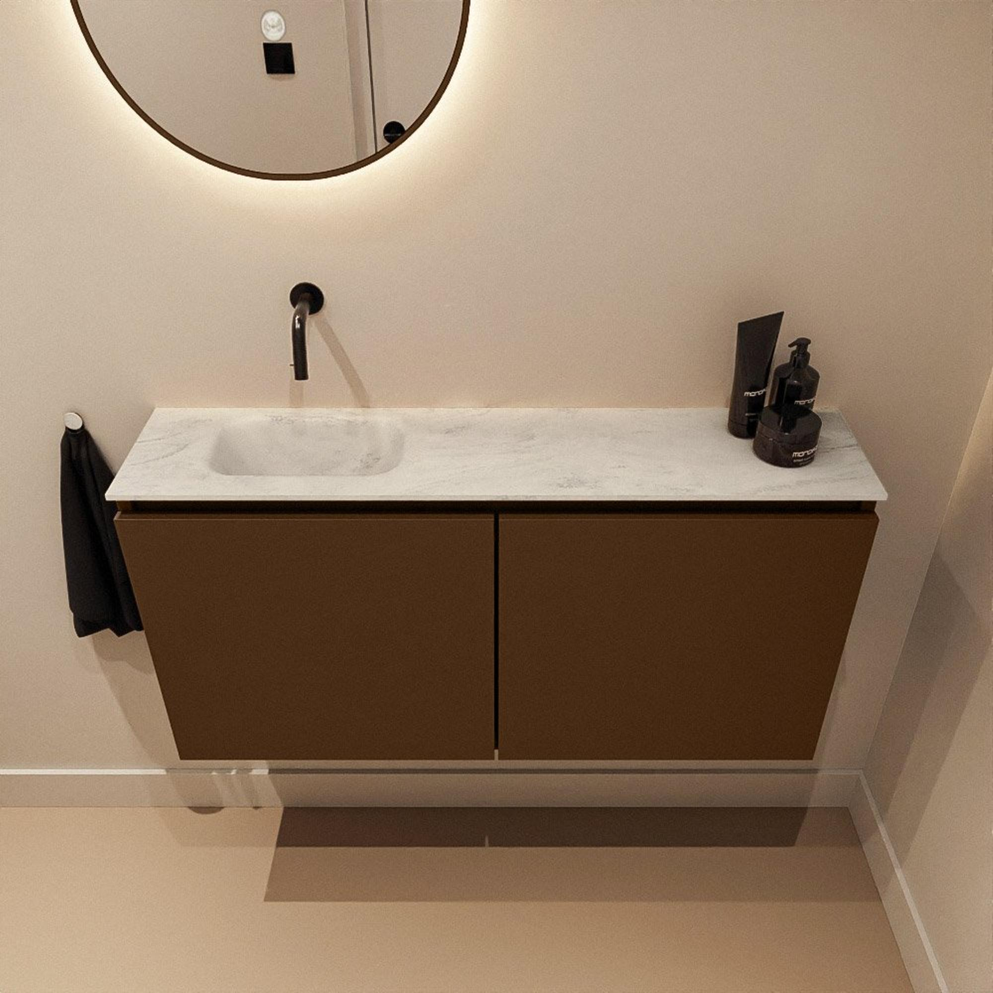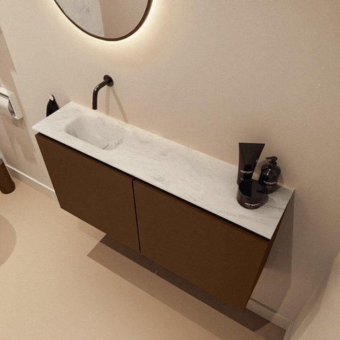 MONDIAZ TURE-DLUX 100cm toiletmeubel Rust. EDEN wastafel Opalo positie links. Zonder kraangat.