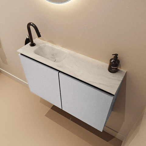 MONDIAZ TURE-DLUX 80cm toiletmeubel Plata. EDEN wastafel Opalo positie links. Met 1 kraangat.