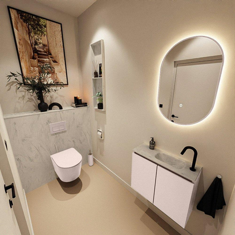 MONDIAZ TURE-DLUX 60cm toiletmeubel Rosee. EDEN wastafel Opalo positie rechts. Met 1 kraangat.
