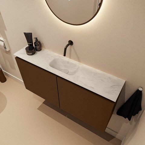 MONDIAZ TURE-DLUX 100cm toiletmeubel Rust. EDEN wastafel Opalo positie midden. Zonder kraangat.