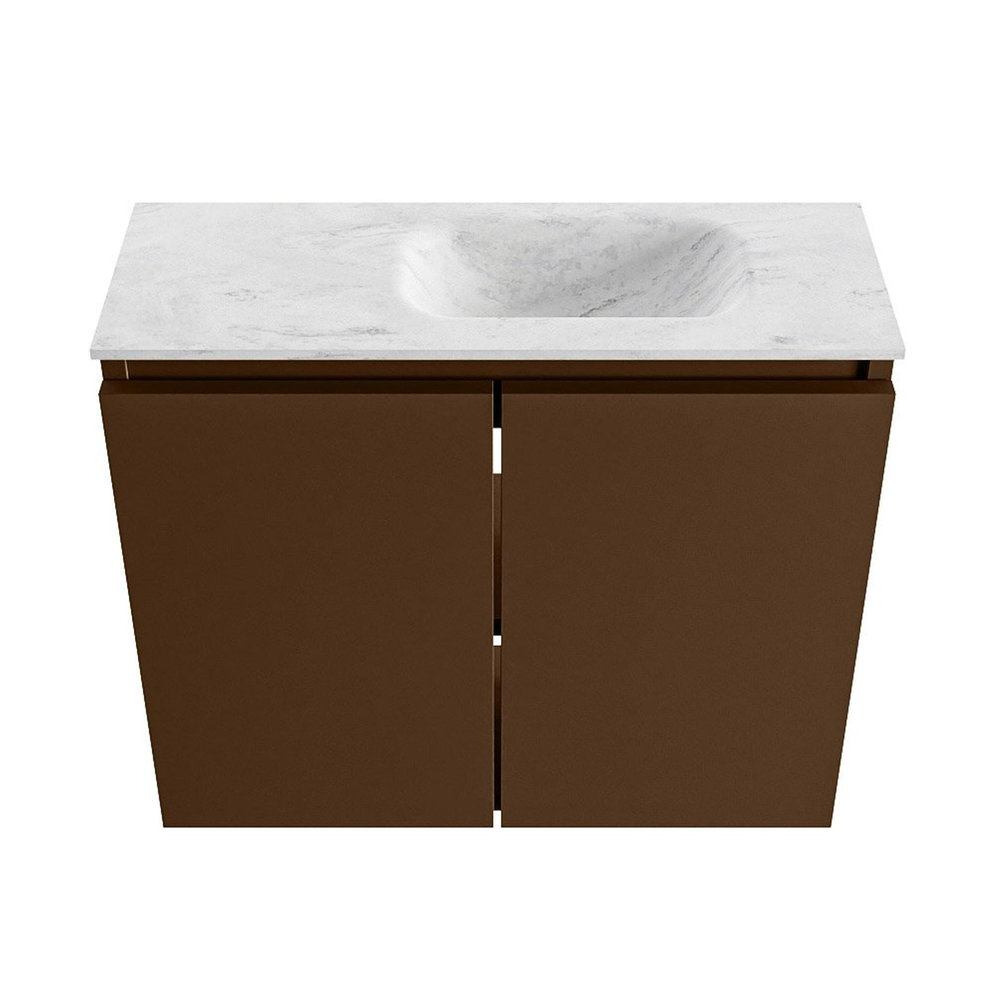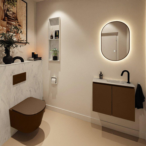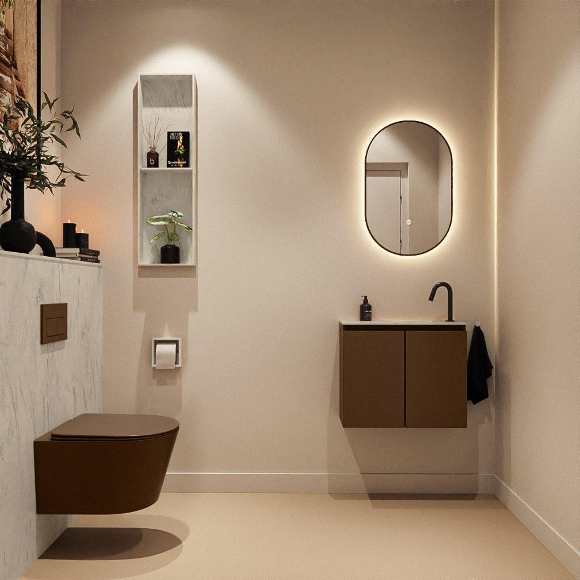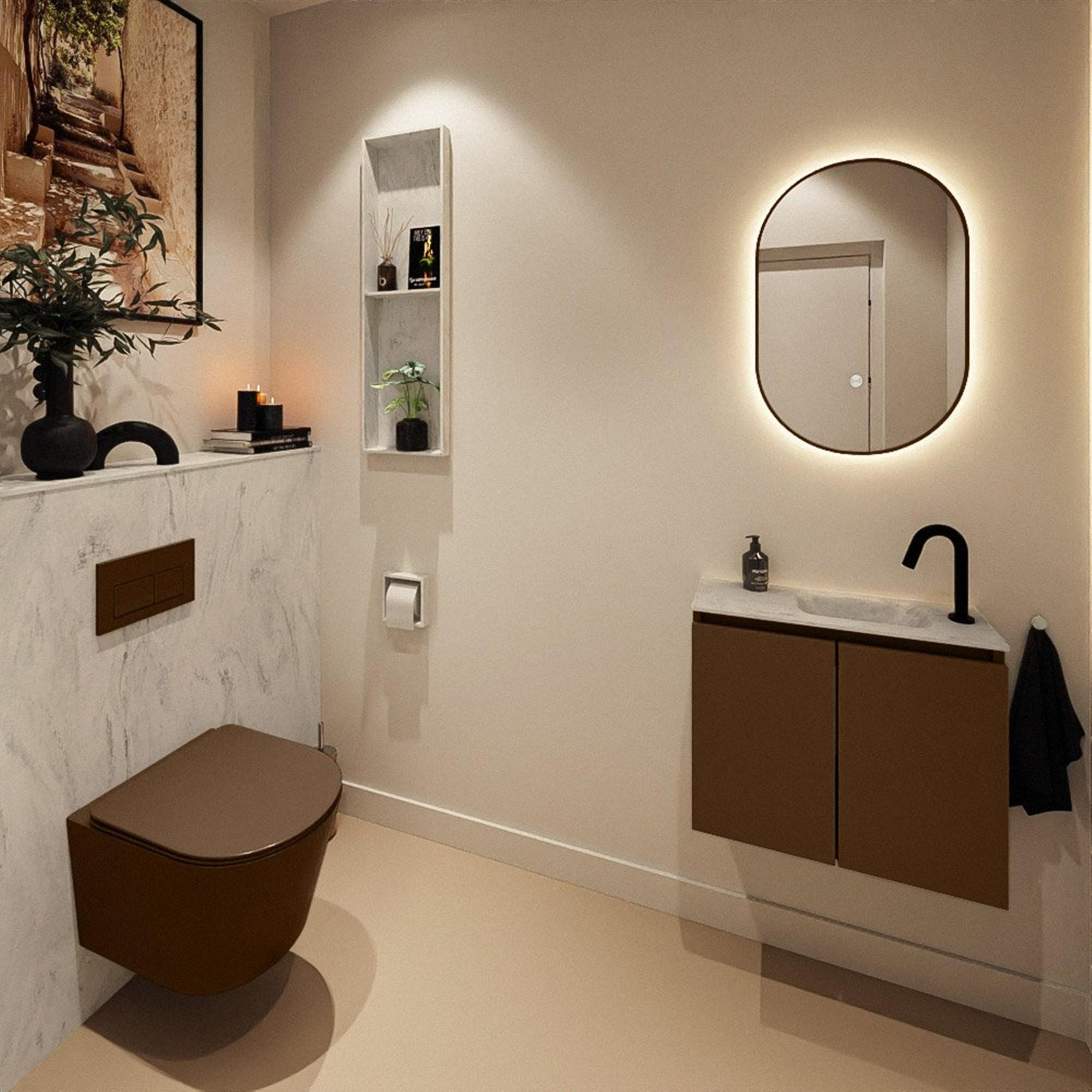 MONDIAZ TURE-DLUX 60cm toiletmeubel Rust. EDEN wastafel Opalo positie rechts. Met 1 kraangat.