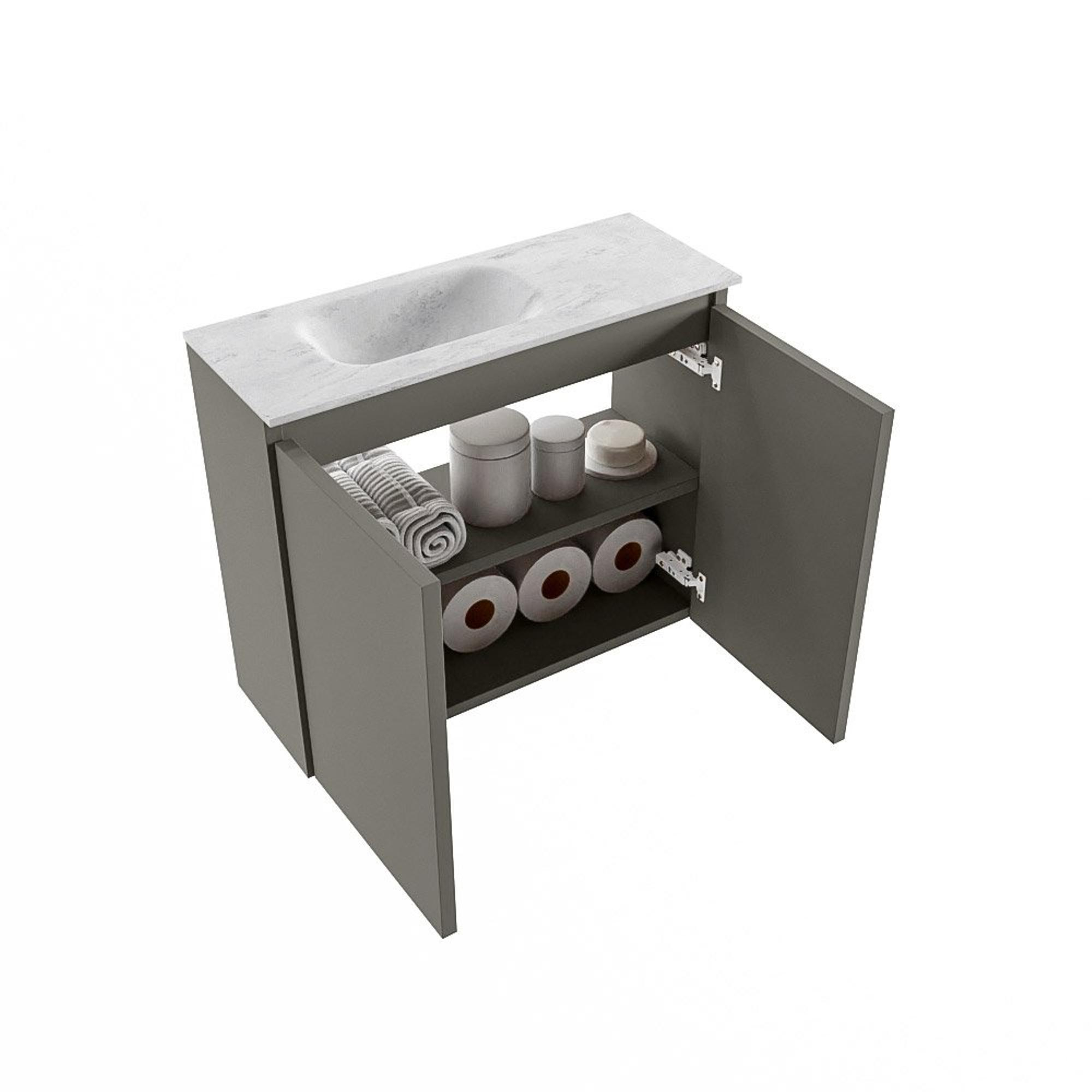 MONDIAZ TURE-DLUX 60cm toiletmeubel Smoke. EDEN wastafel Opalo positie links. Zonder kraangat.