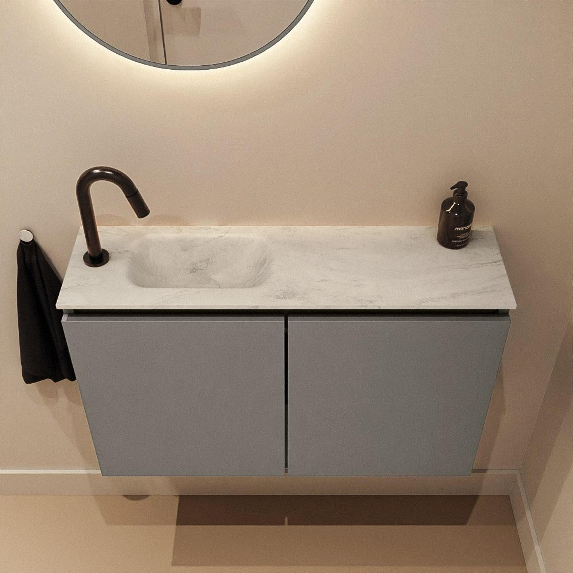 MONDIAZ TURE-DLUX 80cm toiletmeubel Smoke. EDEN wastafel Opalo positie links. Met 1 kraangat.