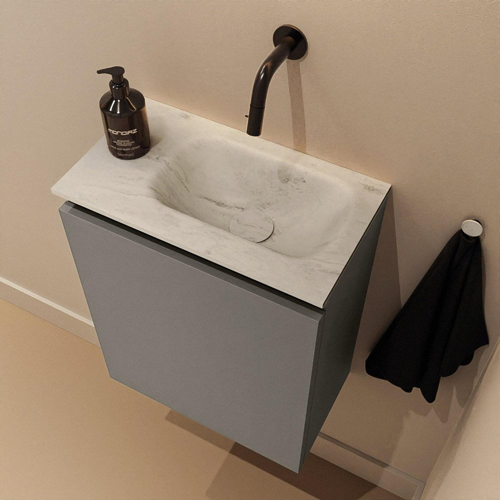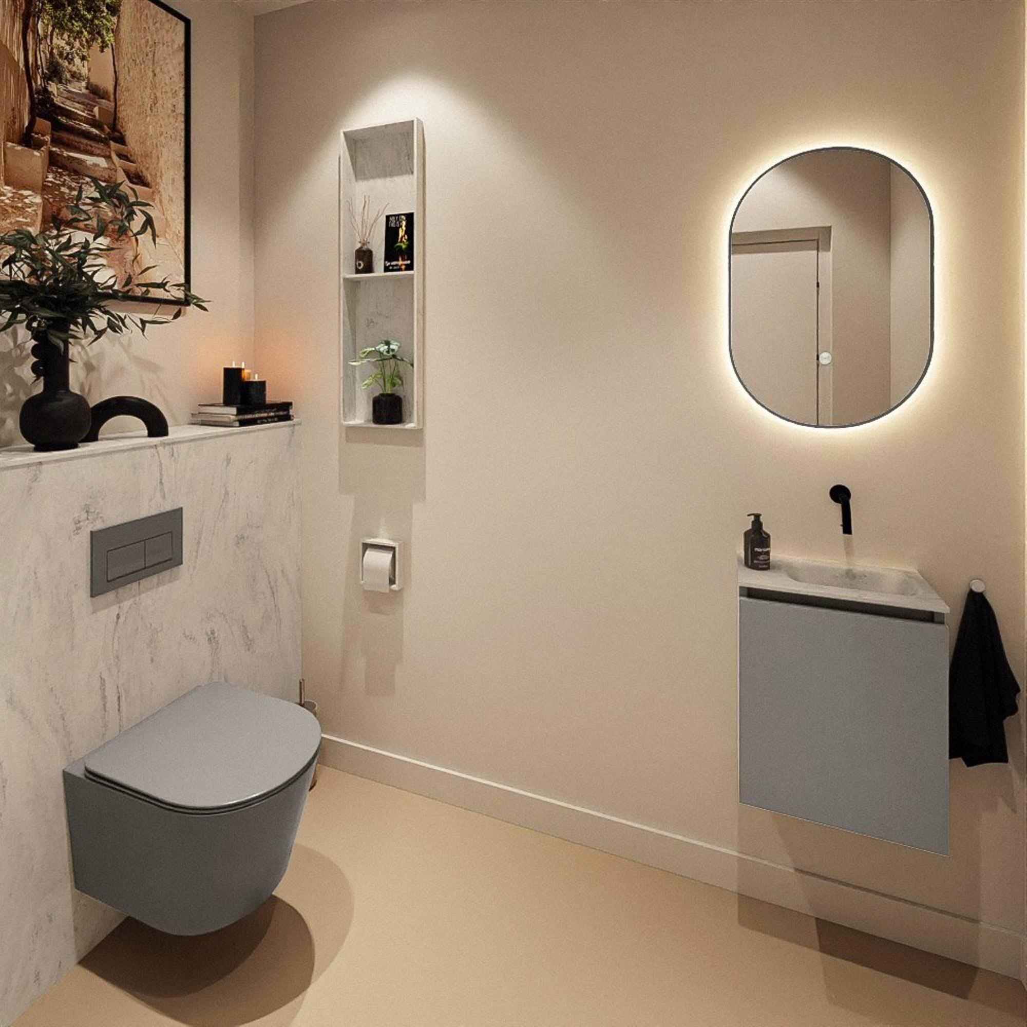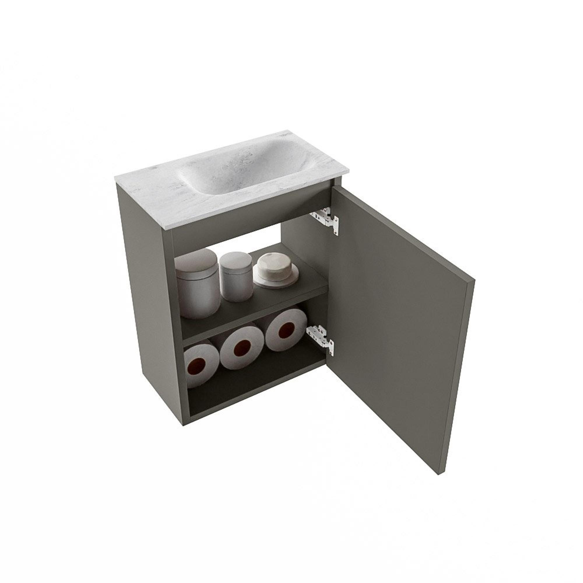 MONDIAZ TURE-DLUX 40cm toiletmeubel Smoke. EDEN wastafel Opalo positie rechts. Zonder kraangat.