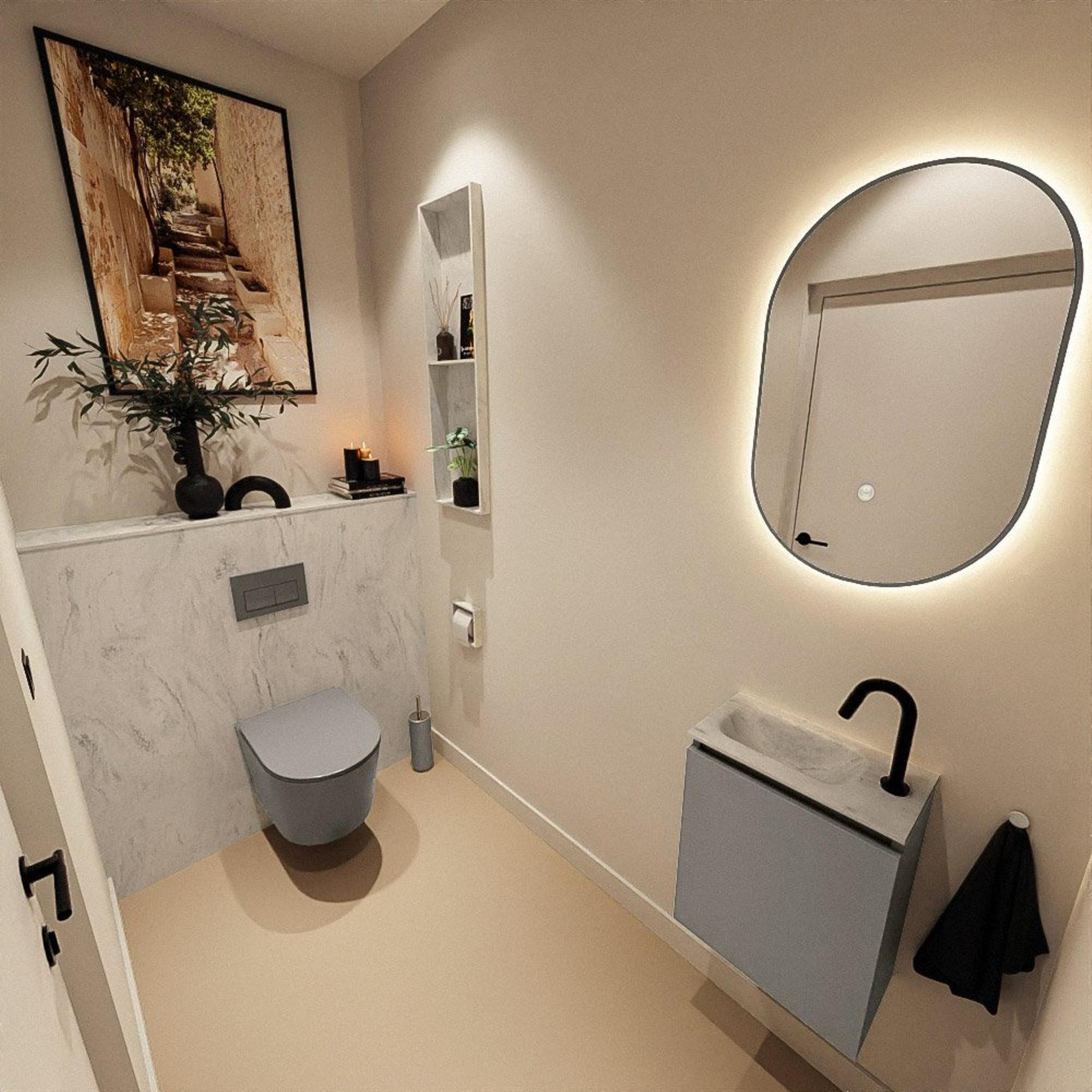 MONDIAZ TURE-DLUX 40cm toiletmeubel Smoke. EDEN wastafel Opalo positie links. Met 1 kraangat.