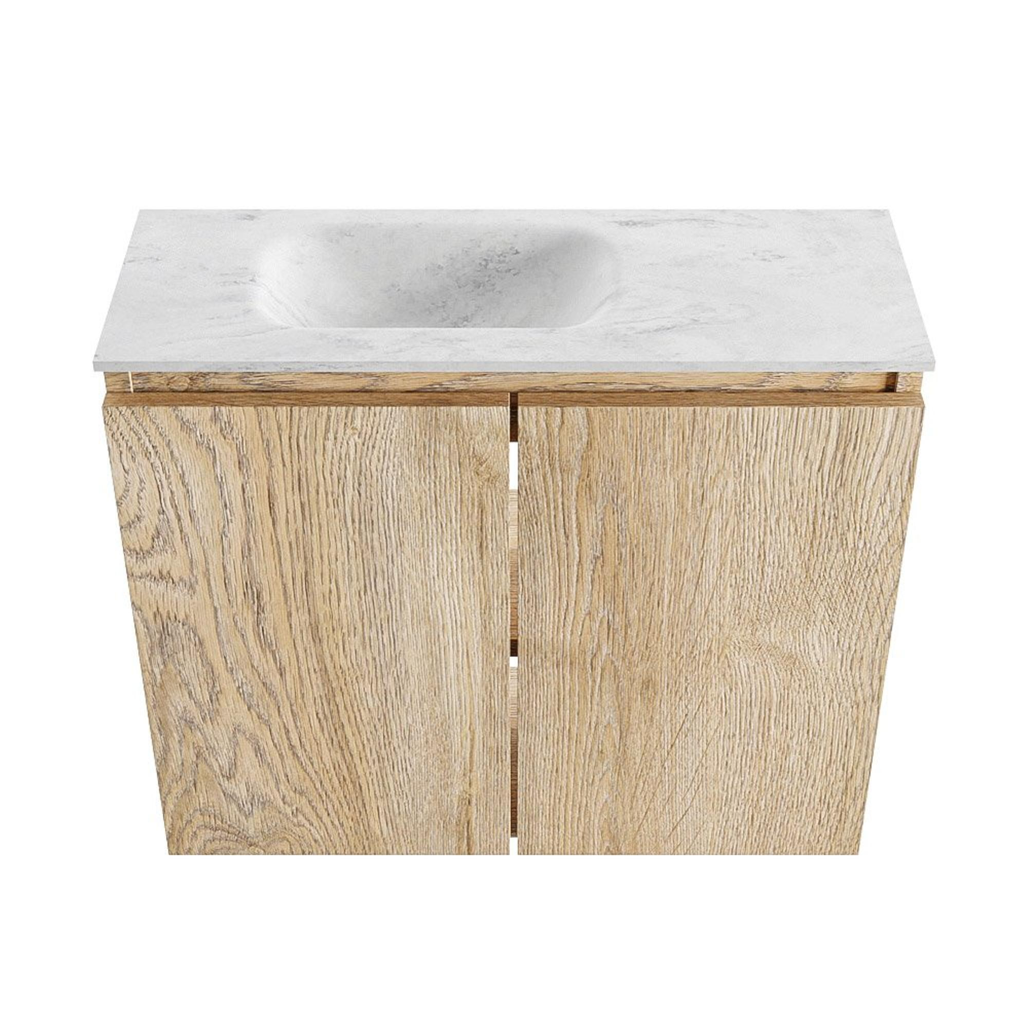 MONDIAZ TURE-DLUX 60cm toiletmeubel Washed Oak. EDEN wastafel Opalo positie links. Zonder kraangat.