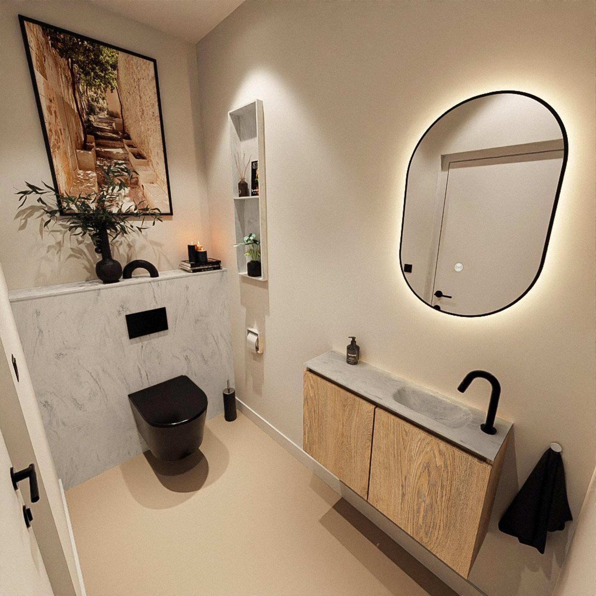 MONDIAZ TURE-DLUX 80cm toiletmeubel Washed Oak. EDEN wastafel Opalo positie rechts. Met 1 kraangat.
