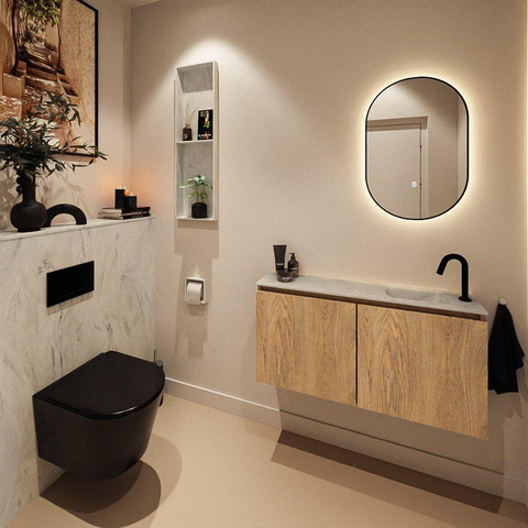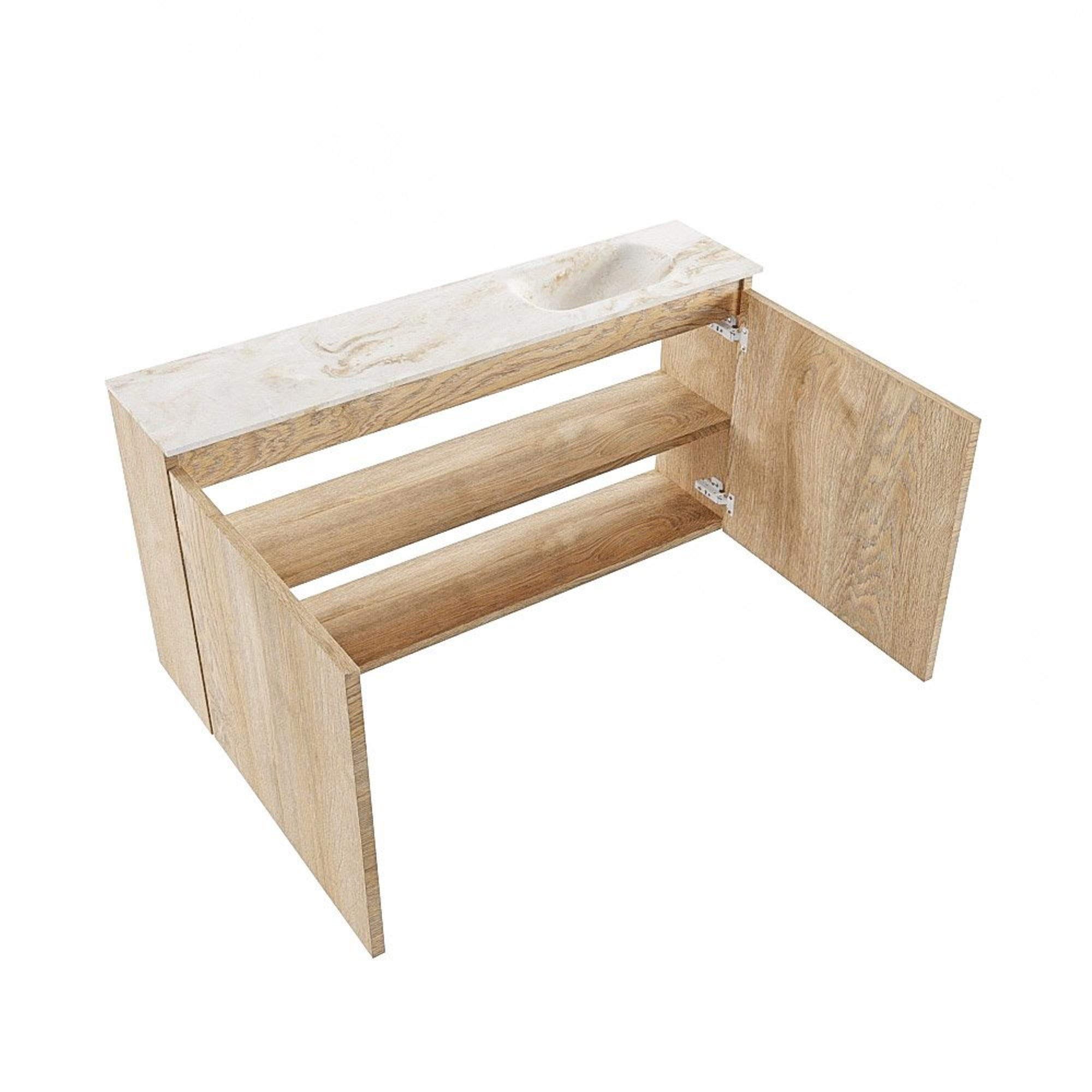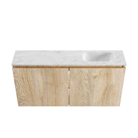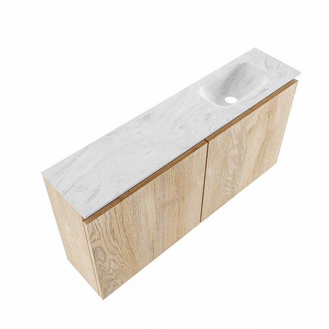 MONDIAZ TURE-DLUX 100cm toiletmeubel Washed Oak. EDEN wastafel Opalo positie rechts. Met 1 kraangat.