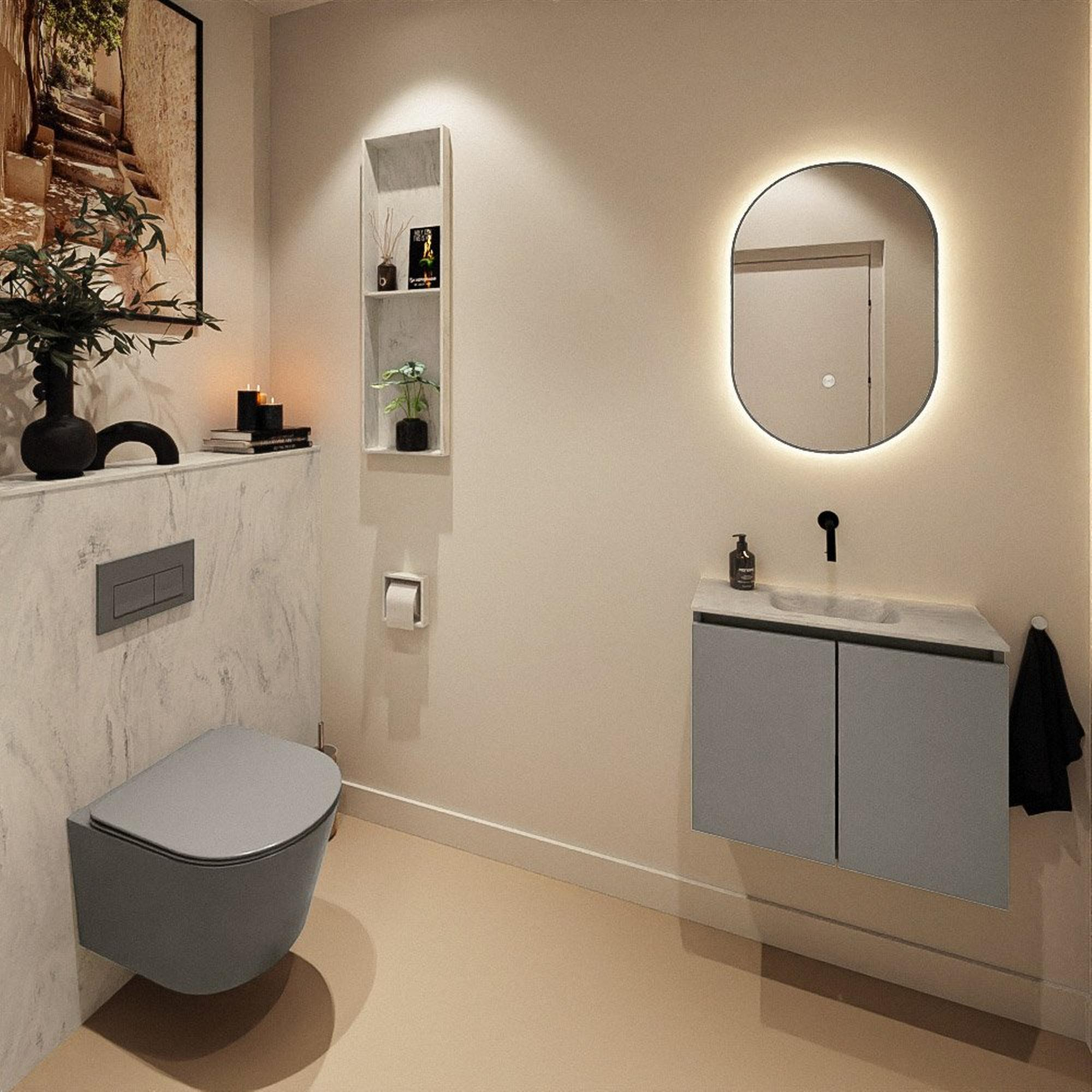 MONDIAZ TURE-DLUX 60cm toiletmeubel Smoke. EDEN wastafel Opalo positie midden. Zonder kraangat.