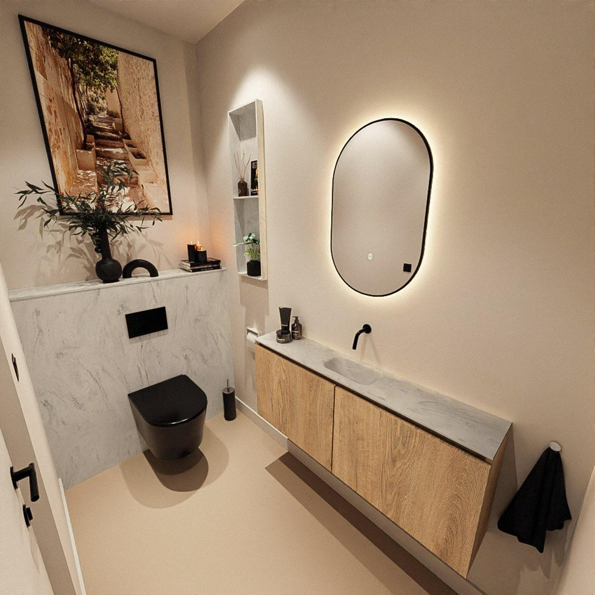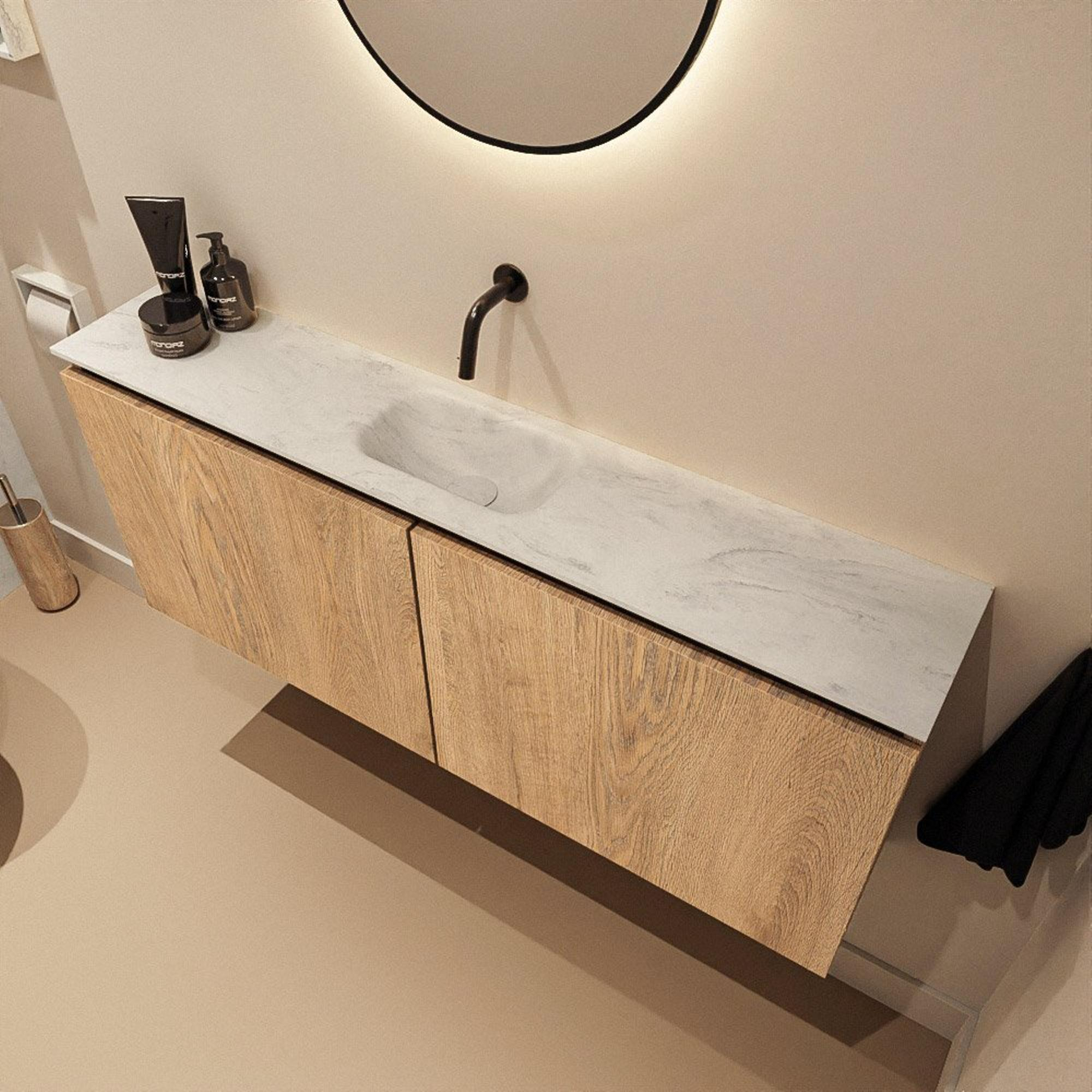 MONDIAZ TURE-DLUX 120cm toiletmeubel Washed Oak. EDEN wastafel Opalo positie midden. Zonder kraangat.