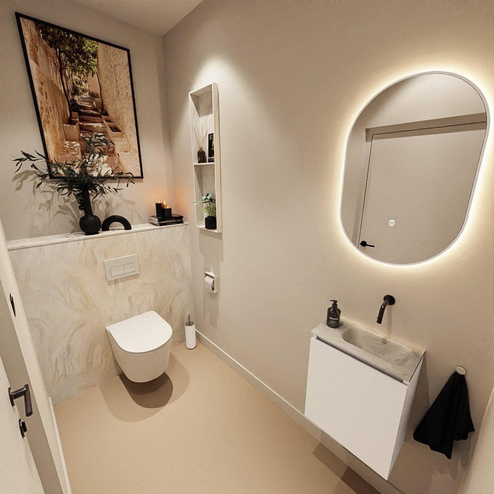 MONDIAZ TURE-DLUX 40cm toiletmeubel Talc. EDEN wastafel Ostra positie rechts. Zonder kraangat.
