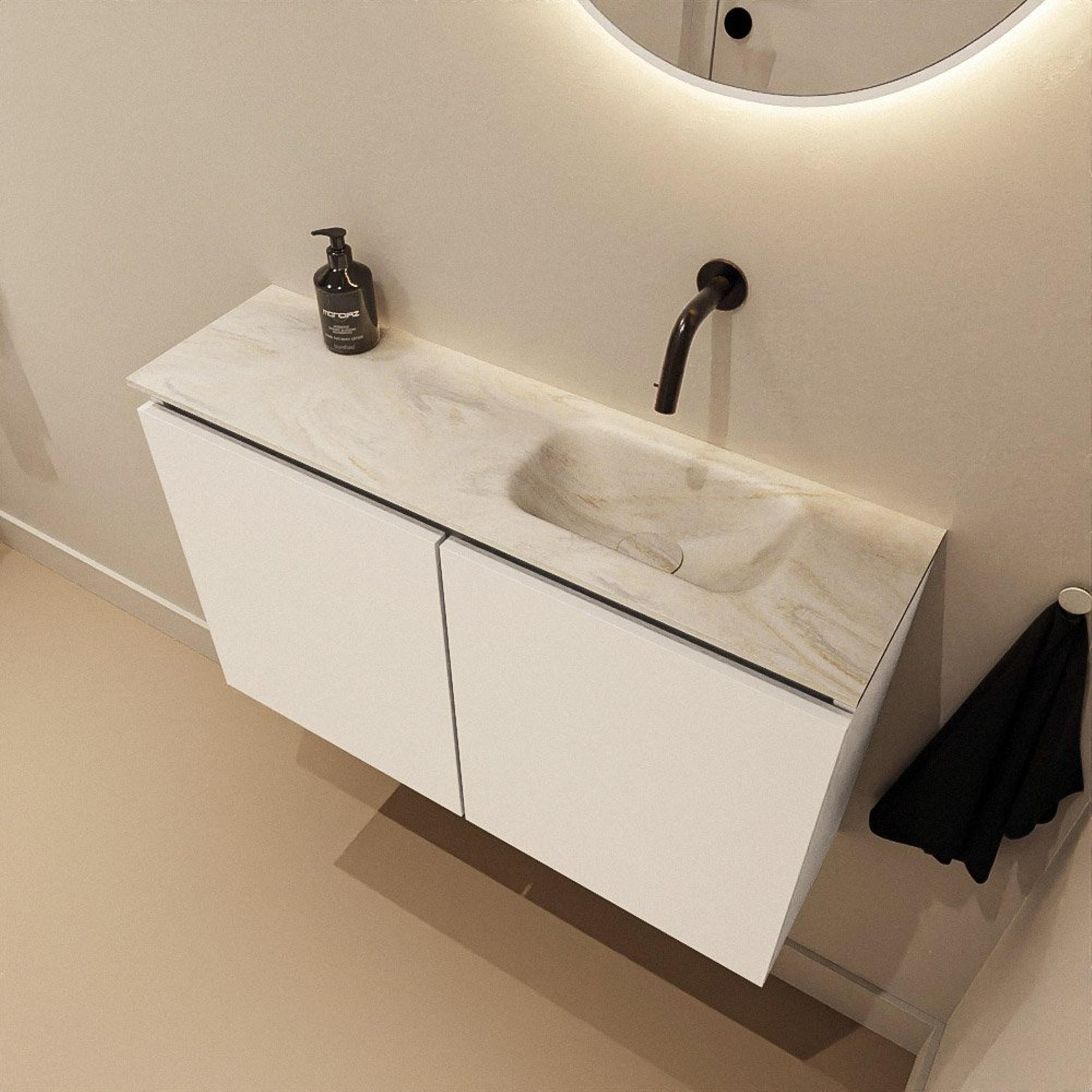 MONDIAZ TURE-DLUX 80cm toiletmeubel Talc. EDEN wastafel Ostra positie rechts. Zonder kraangat.