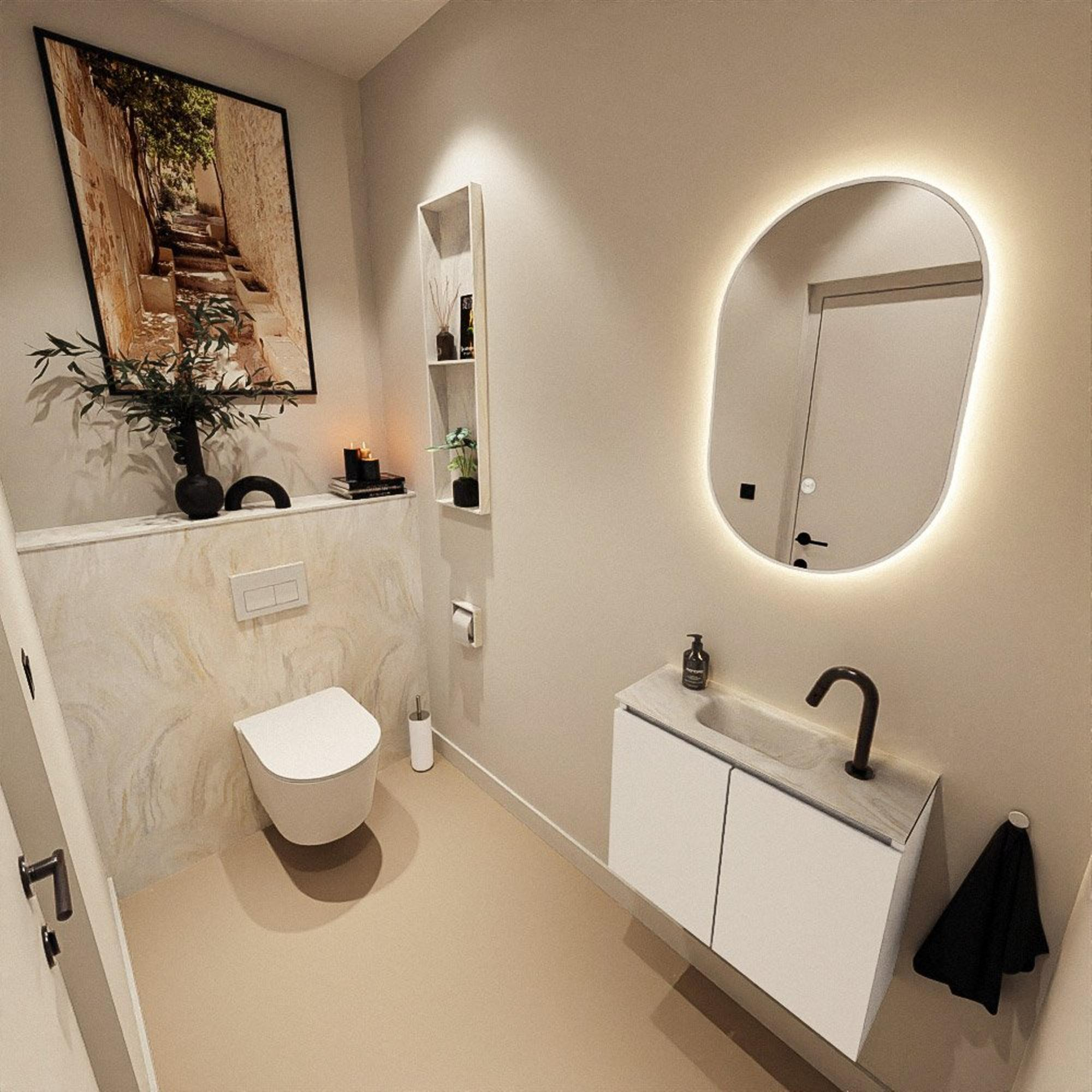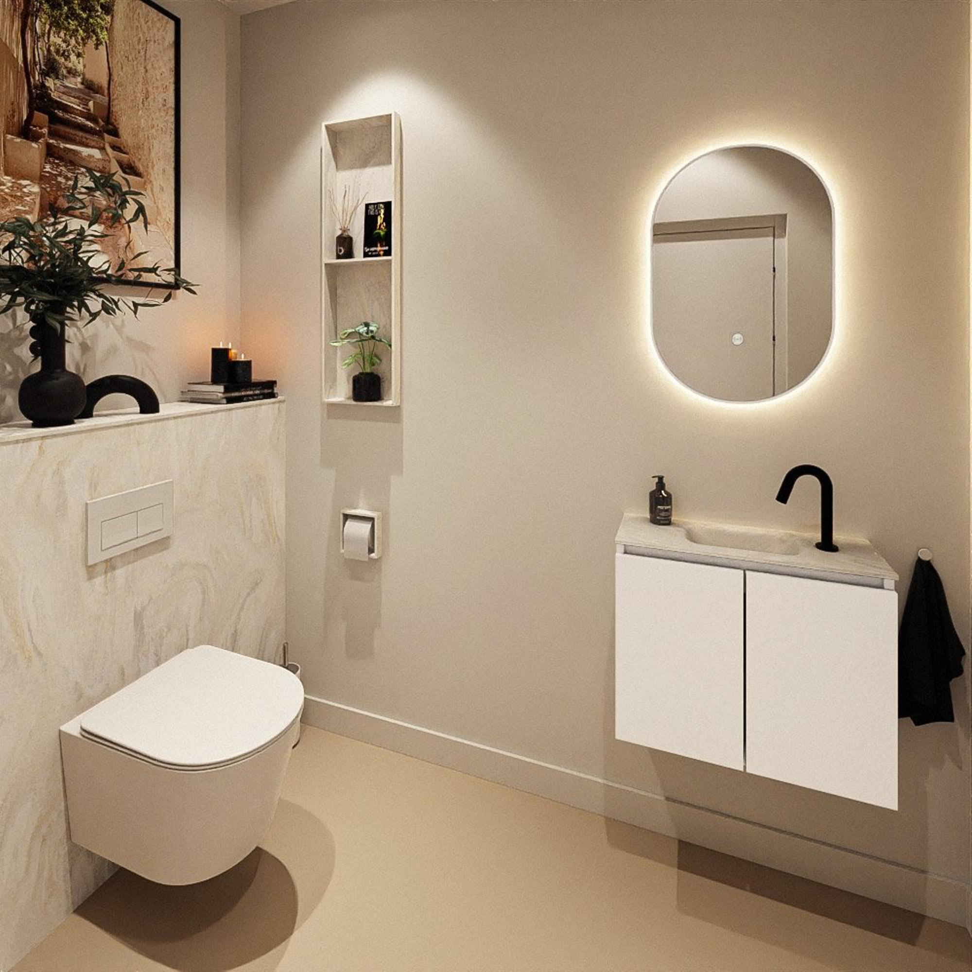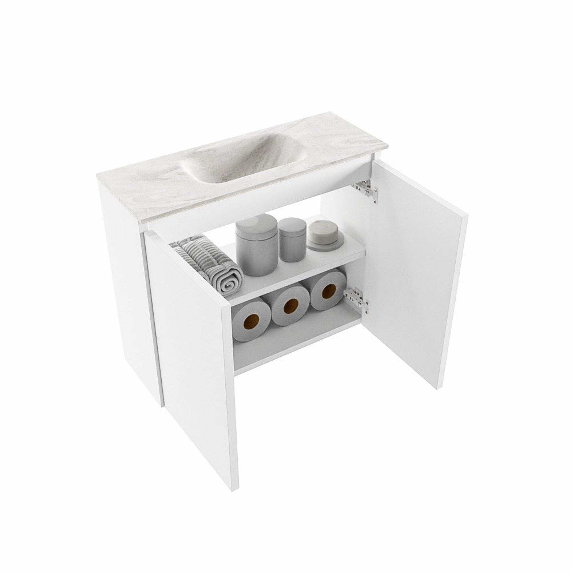 MONDIAZ TURE-DLUX 60cm toiletmeubel Talc. EDEN wastafel Ostra positie midden. Met 1 kraangat.