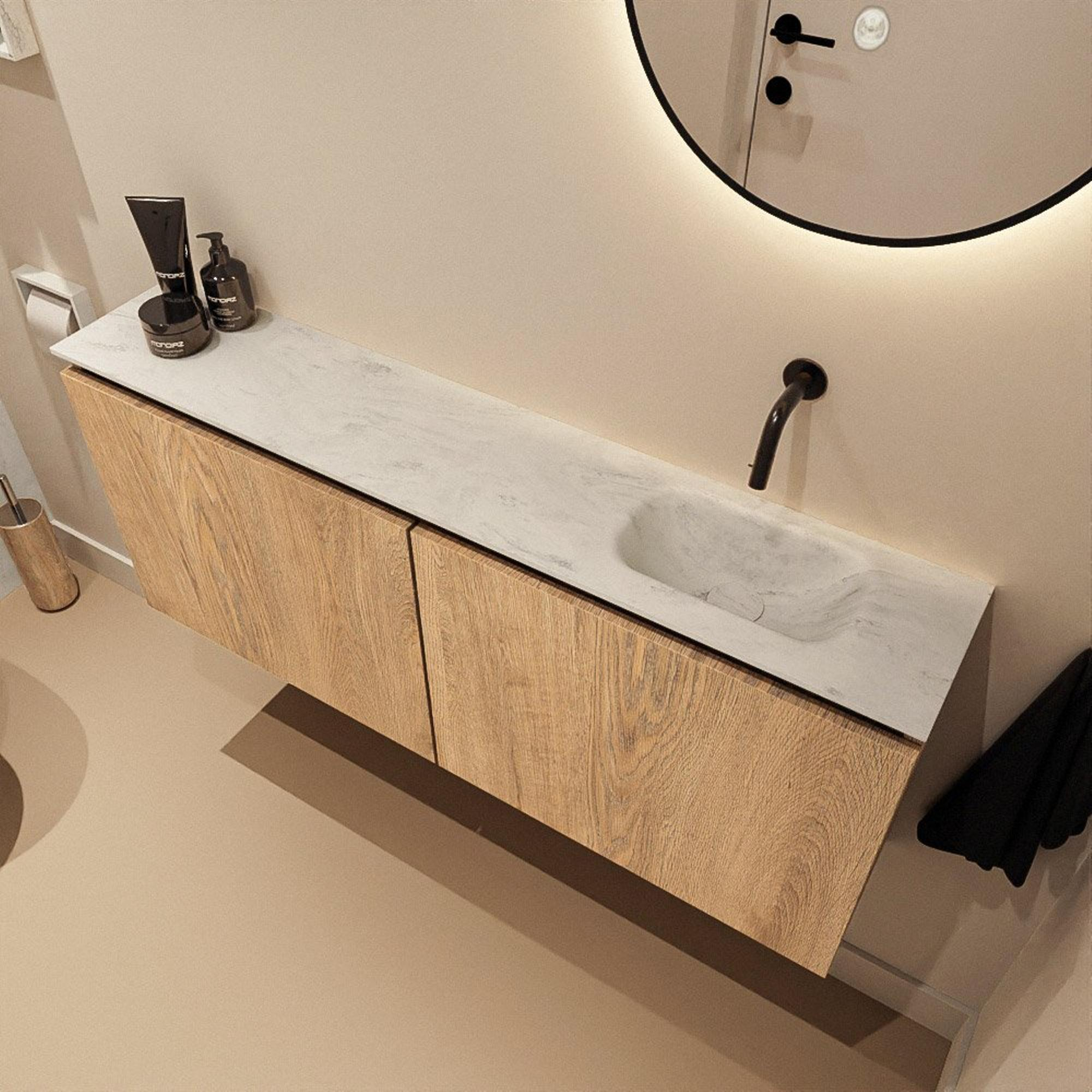 MONDIAZ TURE-DLUX 120cm toiletmeubel Washed Oak. EDEN wastafel Opalo positie rechts. Zonder kraangat.