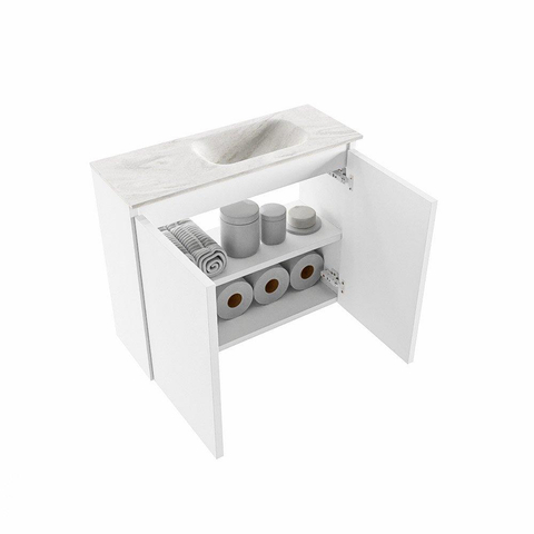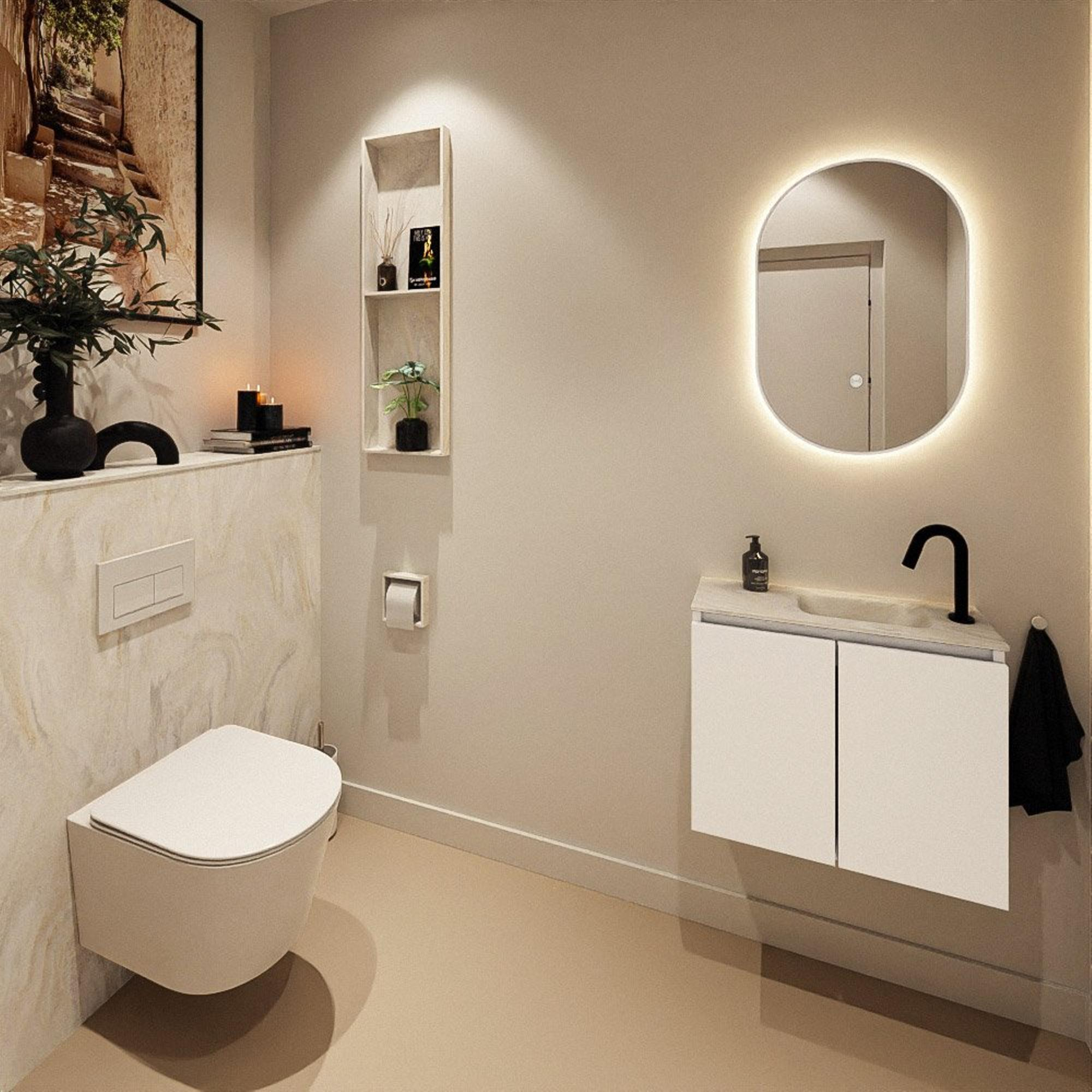 MONDIAZ TURE-DLUX 60cm toiletmeubel Talc. EDEN wastafel Ostra positie rechts. Met 1 kraangat.