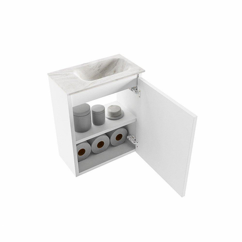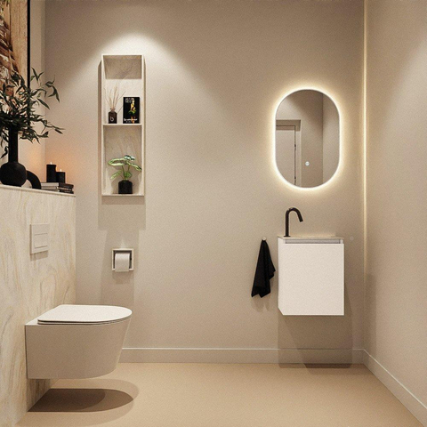 MONDIAZ TURE-DLUX 40cm toiletmeubel Talc. EDEN wastafel Ostra positie rechts. Met 1 kraangat.