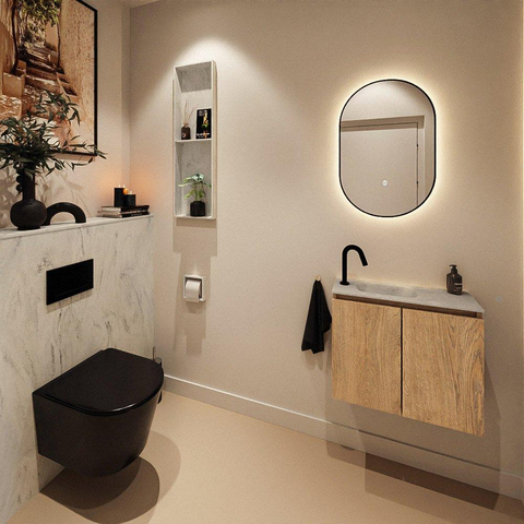 MONDIAZ TURE-DLUX 60cm toiletmeubel Washed Oak. EDEN wastafel Opalo positie links. Met 1 kraangat.
