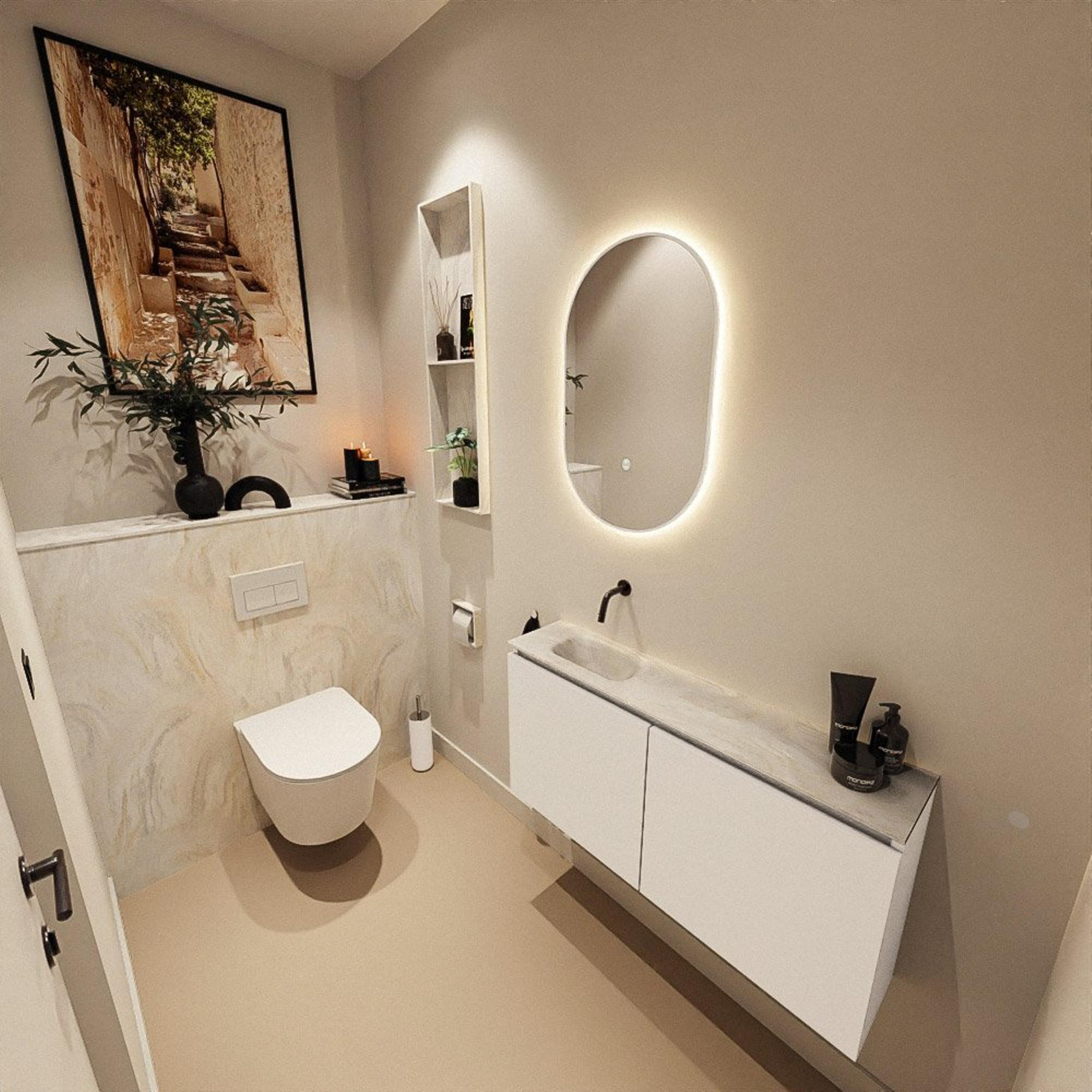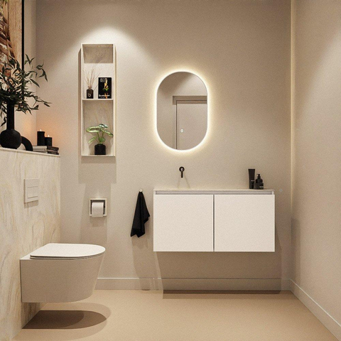 MONDIAZ TURE-DLUX 100cm toiletmeubel Talc. EDEN wastafel Ostra positie links. Zonder kraangat.