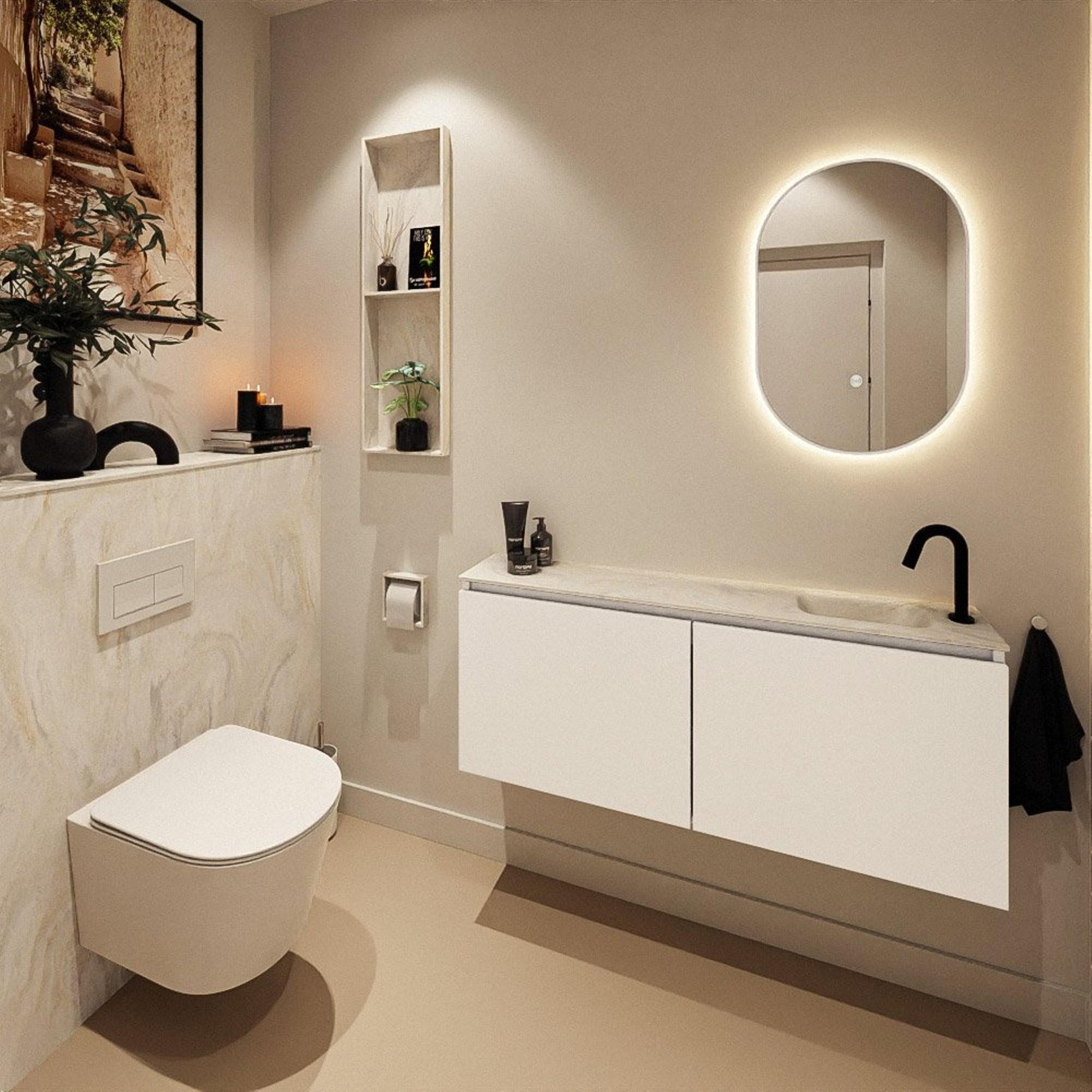 MONDIAZ TURE-DLUX 120cm toiletmeubel Talc. EDEN wastafel Ostra positie rechts. Met 1 kraangat.