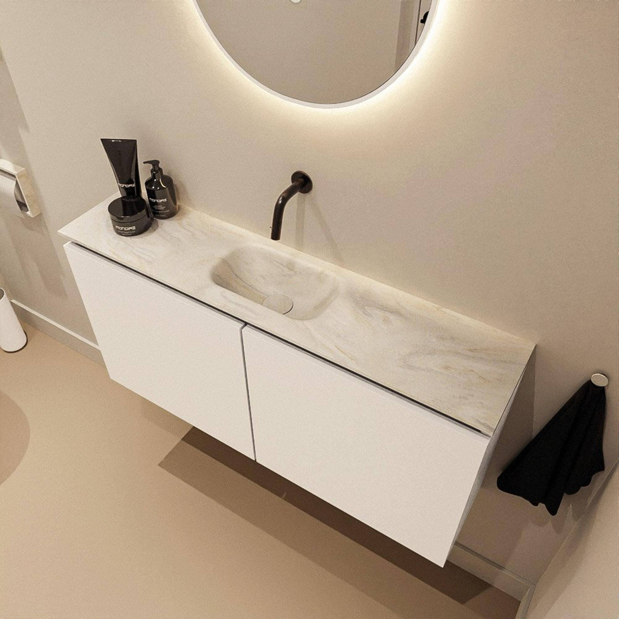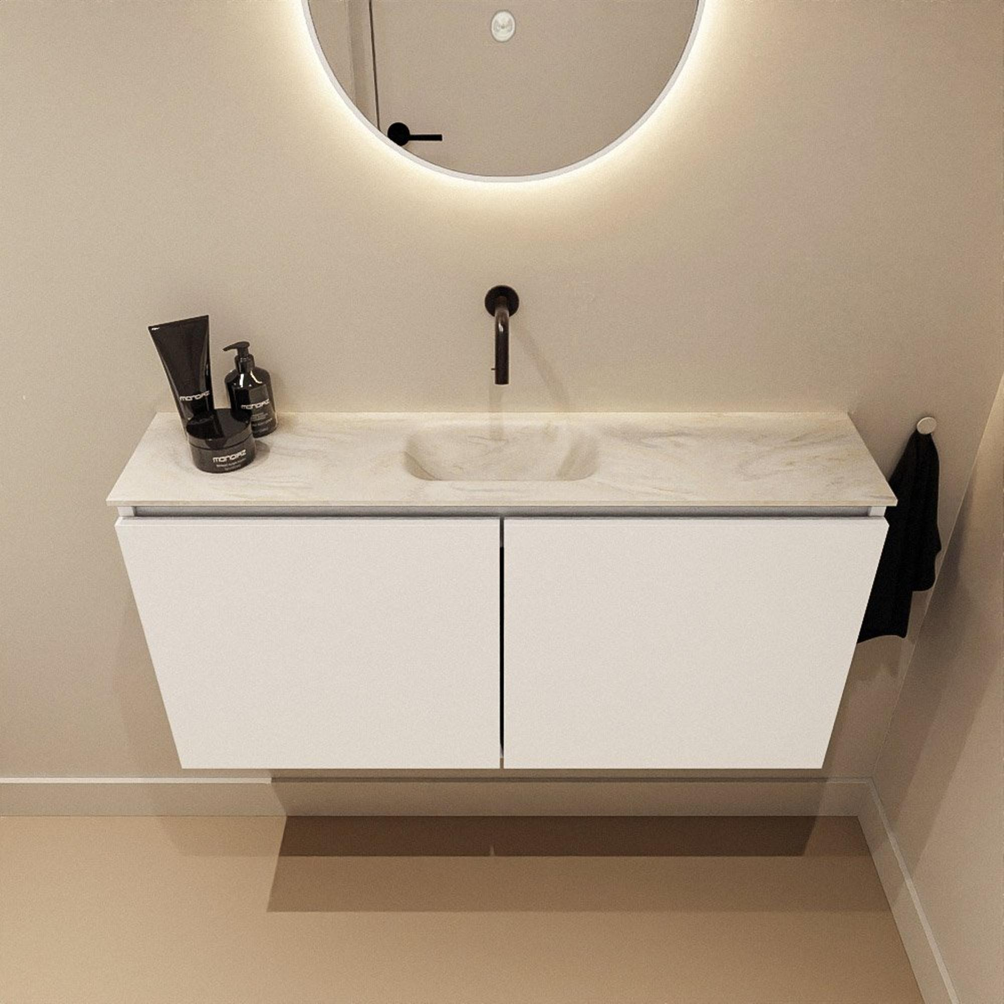 MONDIAZ TURE-DLUX 100cm toiletmeubel Talc. EDEN wastafel Ostra positie midden. Zonder kraangat.