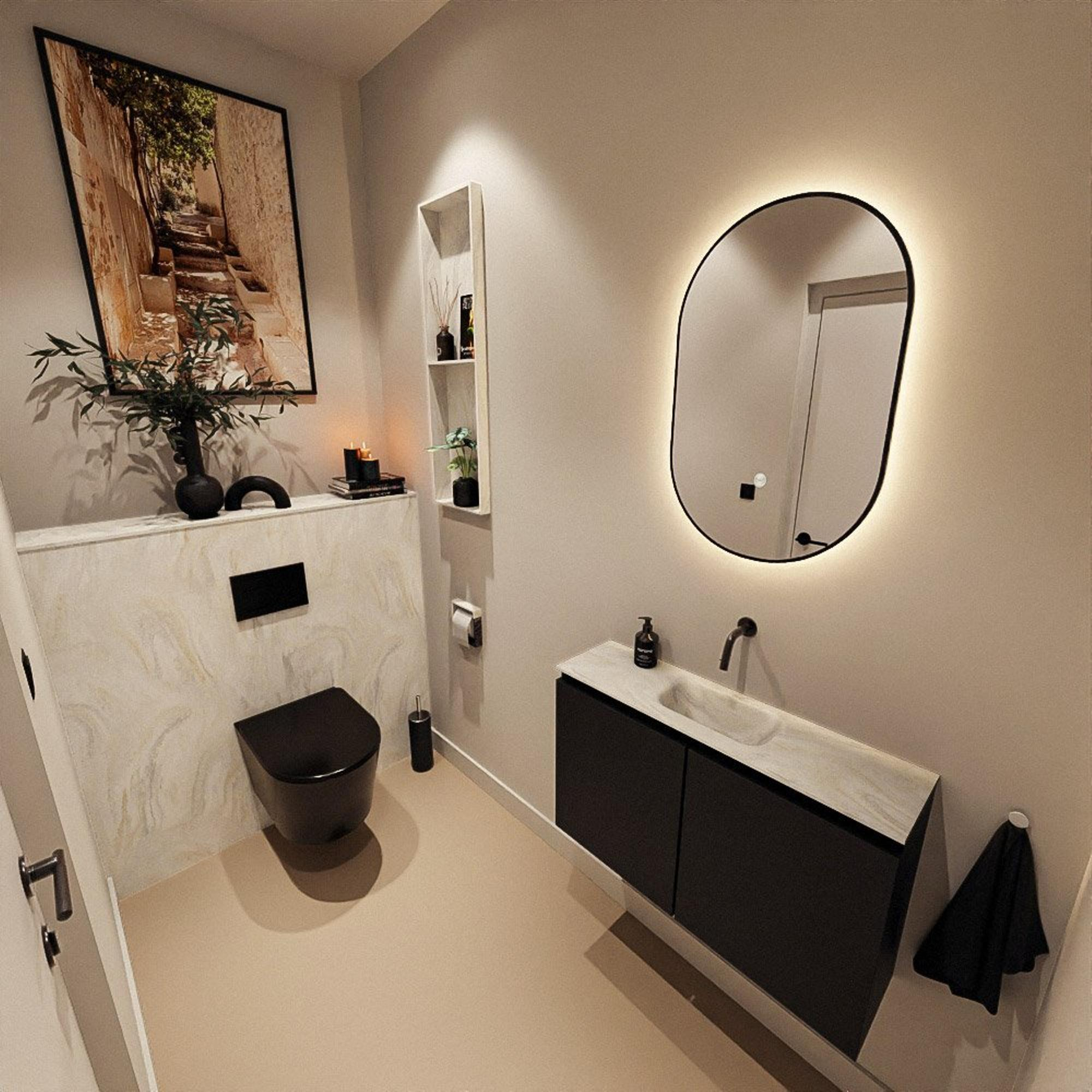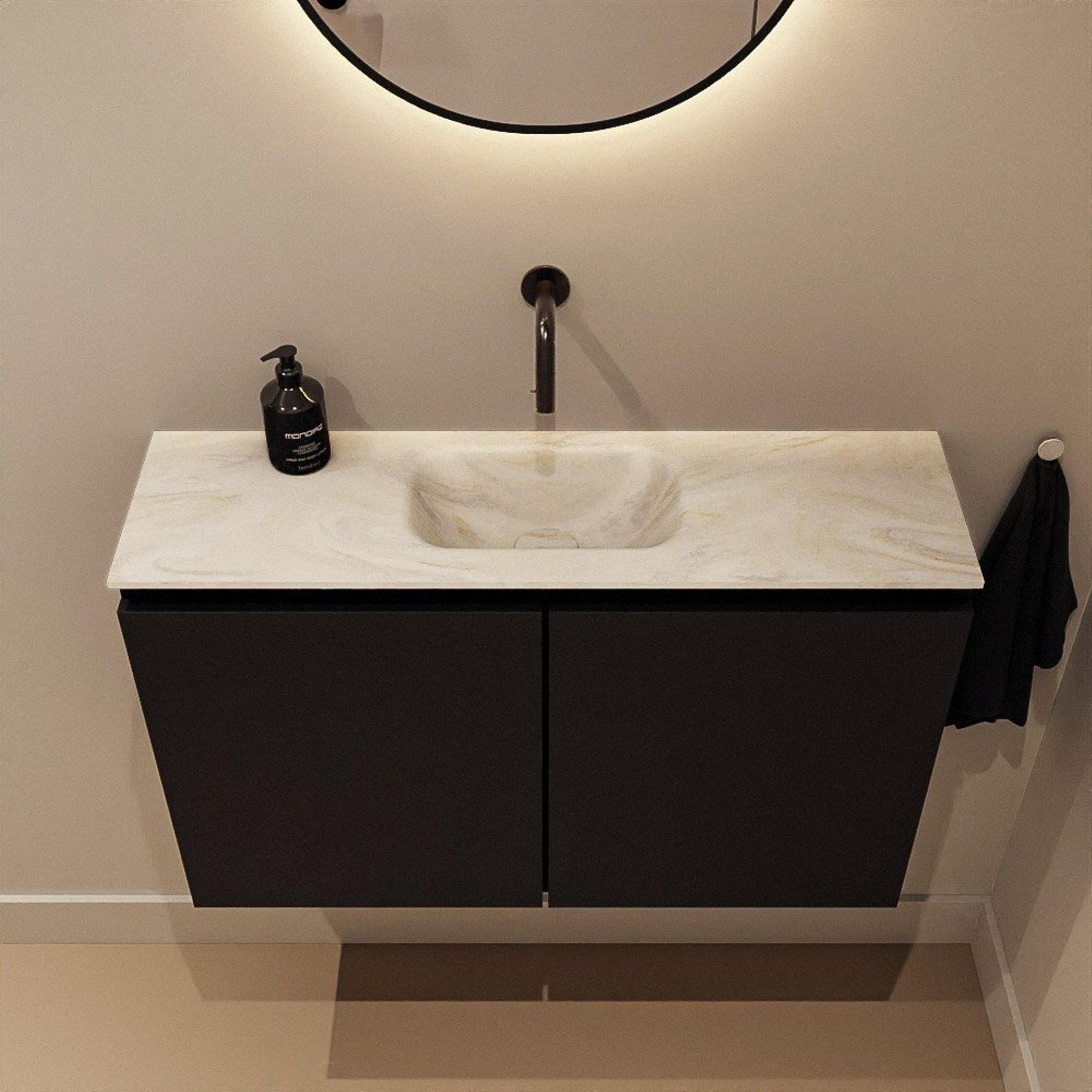 MONDIAZ TURE-DLUX 80cm toiletmeubel Urban. EDEN wastafel Ostra positie midden. Zonder kraangat.