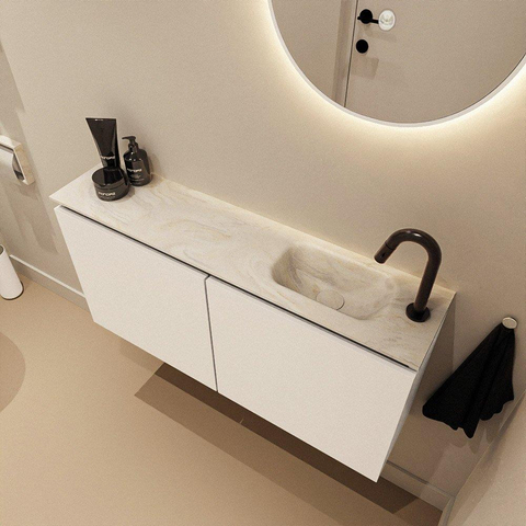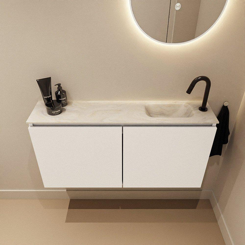 MONDIAZ TURE-DLUX 100cm toiletmeubel Talc. EDEN wastafel Ostra positie rechts. Met 1 kraangat.