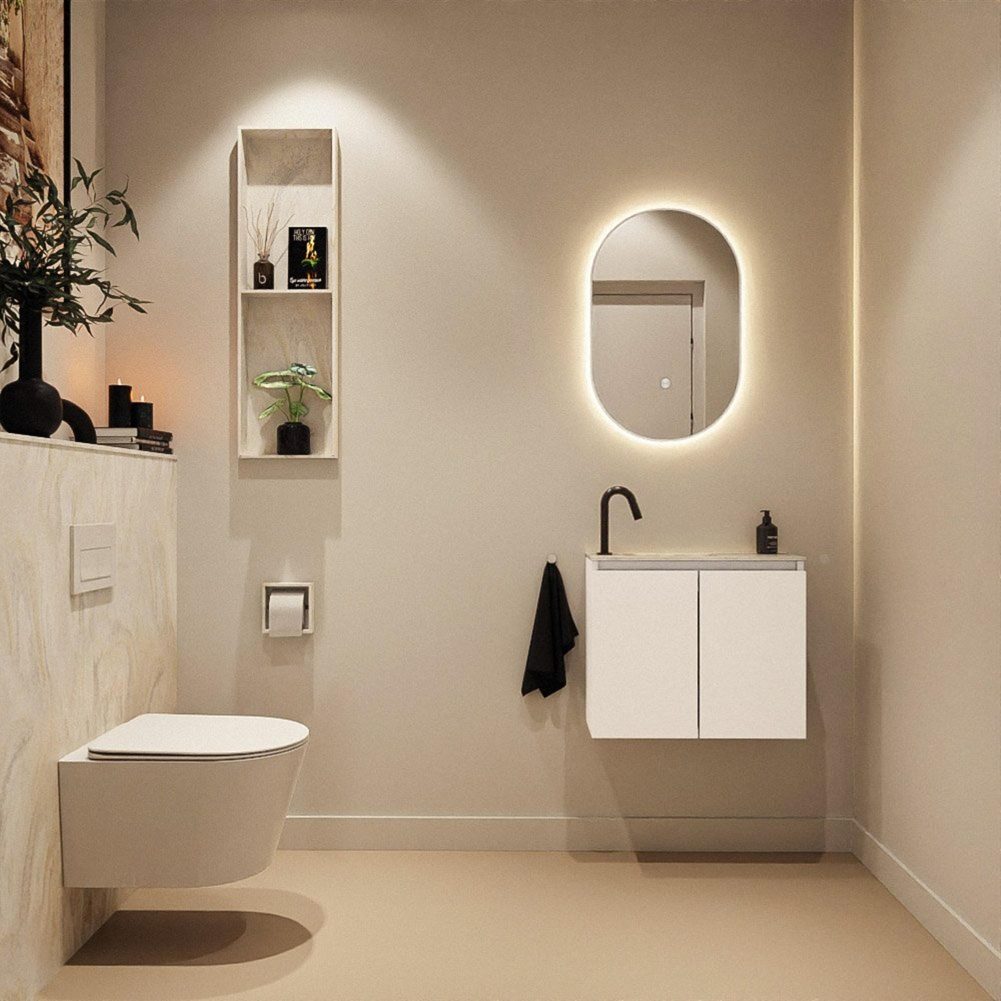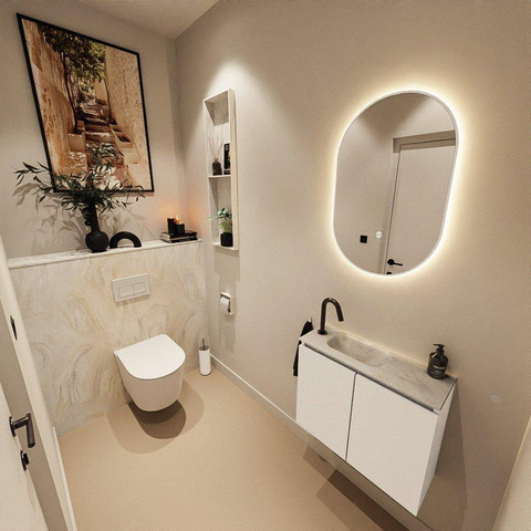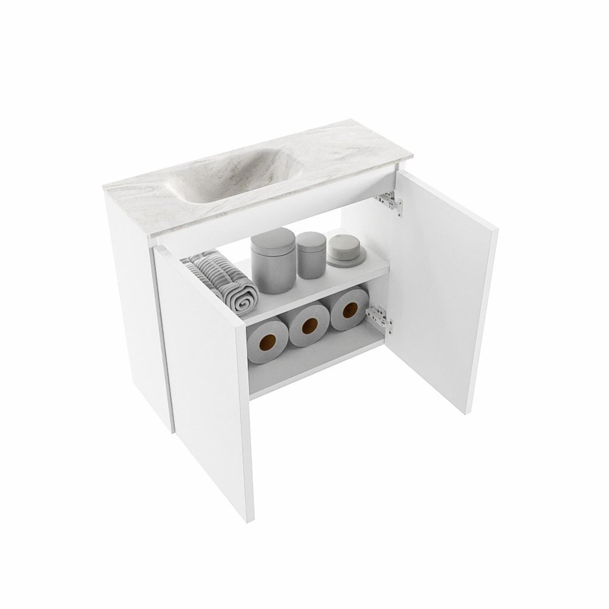 MONDIAZ TURE-DLUX 60cm toiletmeubel Talc. EDEN wastafel Ostra positie links. Met 1 kraangat.