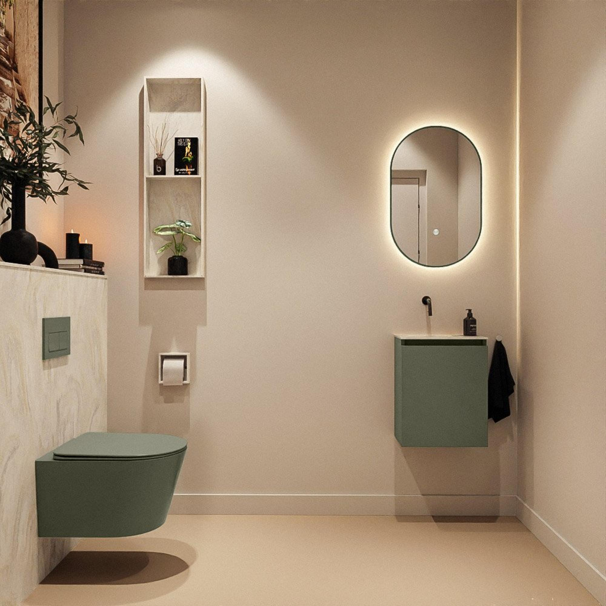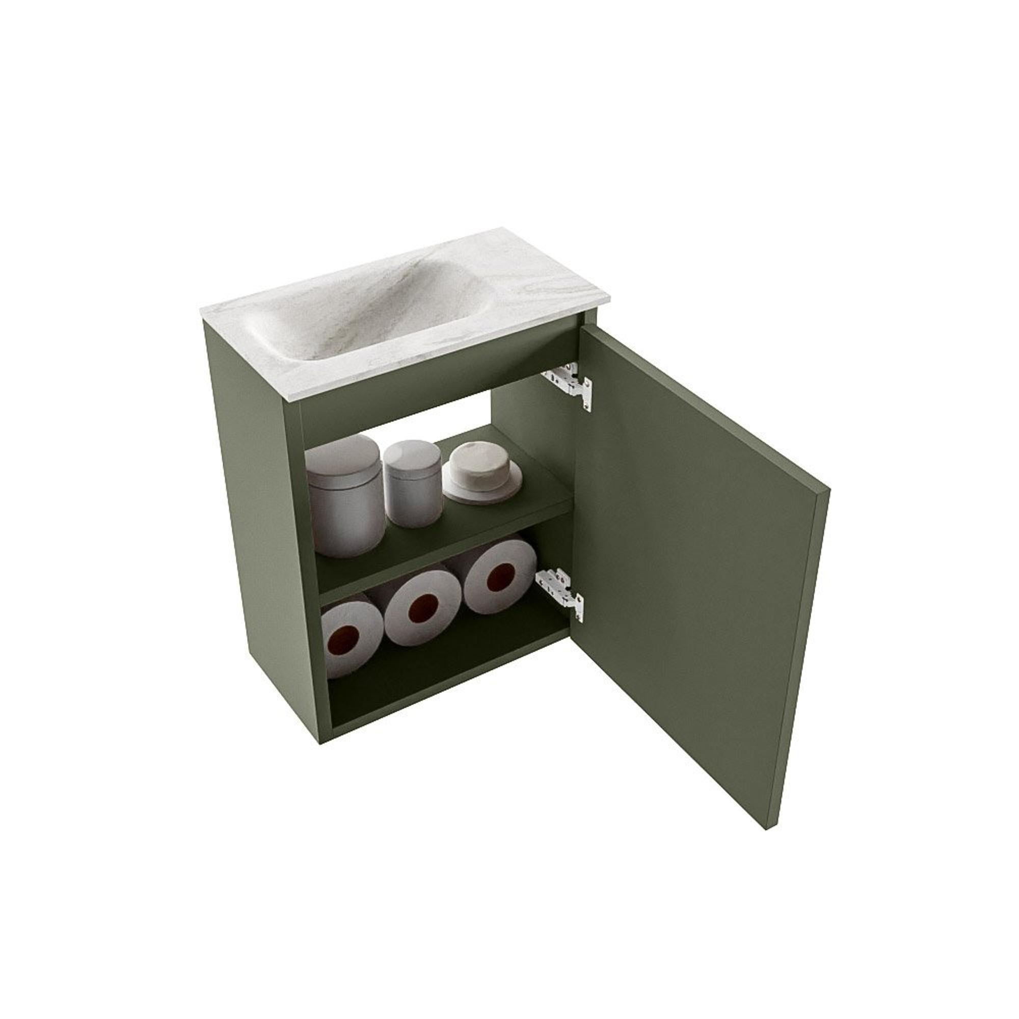 MONDIAZ TURE-DLUX 40cm toiletmeubel Army. EDEN wastafel Ostra positie links. Zonder kraangat.