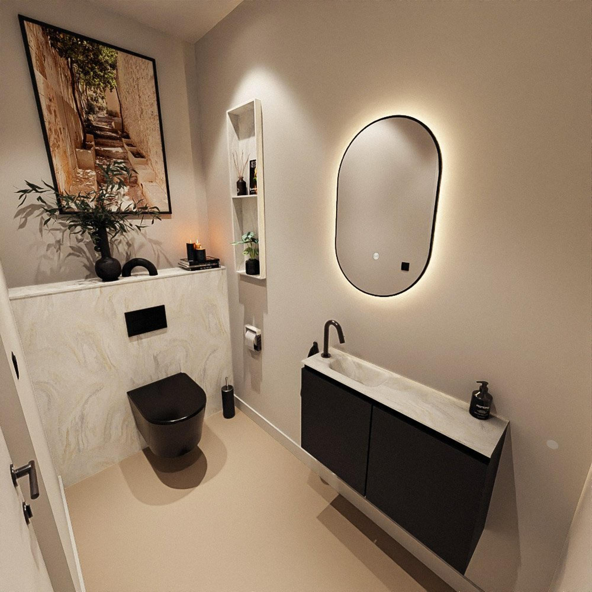 MONDIAZ TURE-DLUX 80cm toiletmeubel Urban. EDEN wastafel Ostra positie links. Met 1 kraangat.
