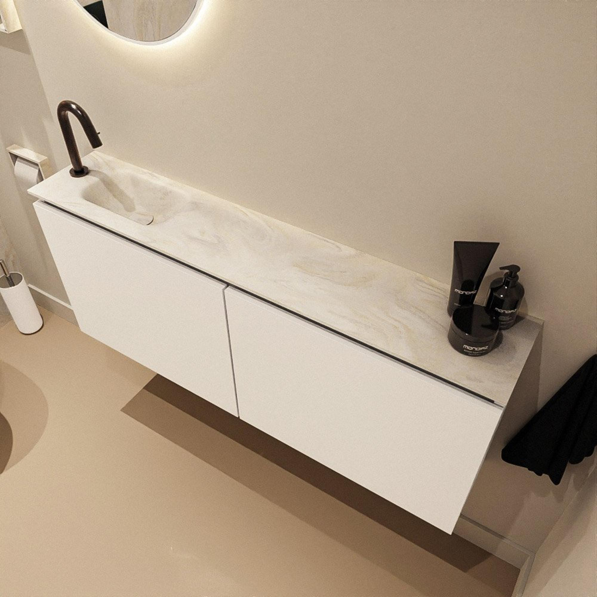 MONDIAZ TURE-DLUX 120cm toiletmeubel Talc. EDEN wastafel Ostra positie links. Met 1 kraangat.