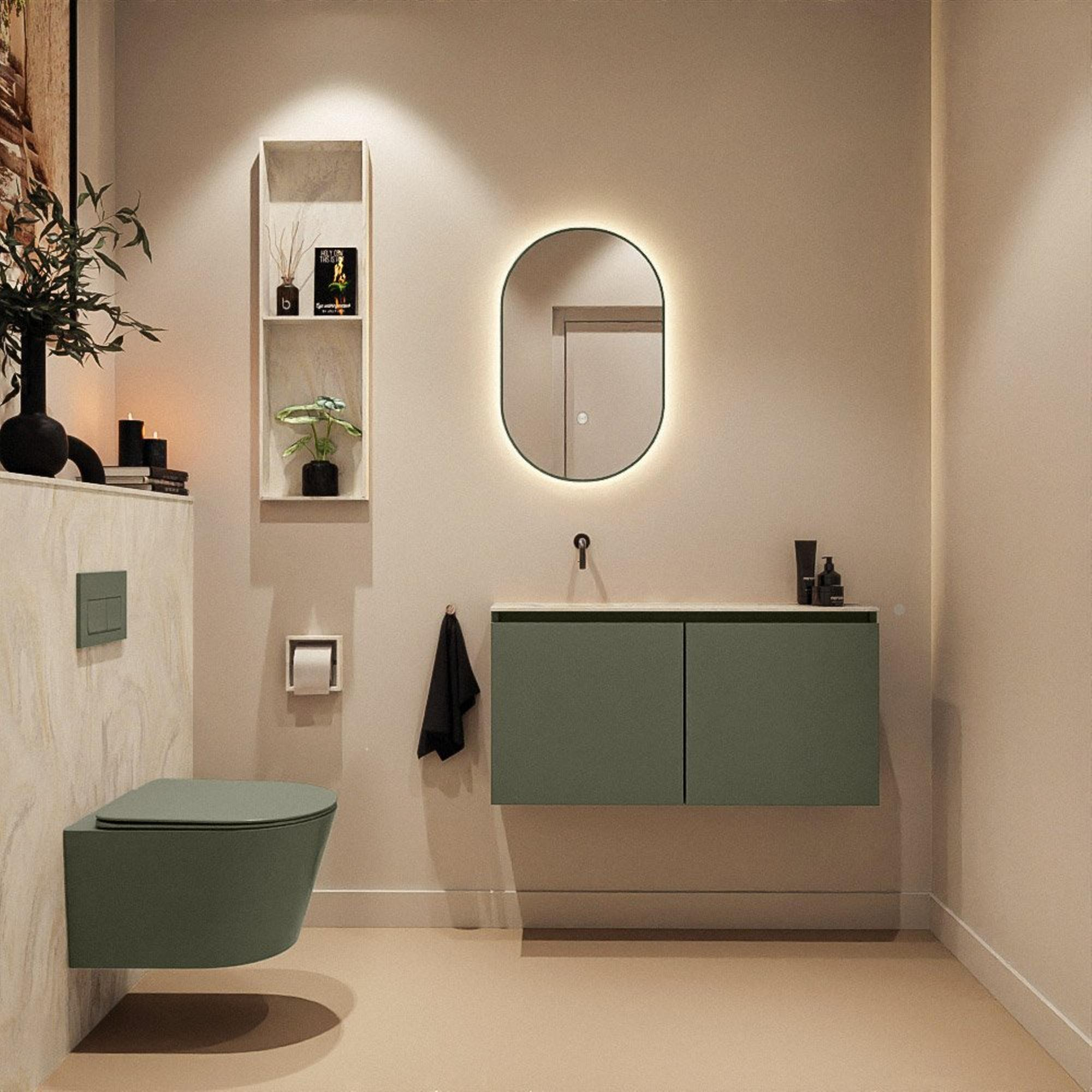 MONDIAZ TURE-DLUX 100cm toiletmeubel Army. EDEN wastafel Ostra positie links. Zonder kraangat.
