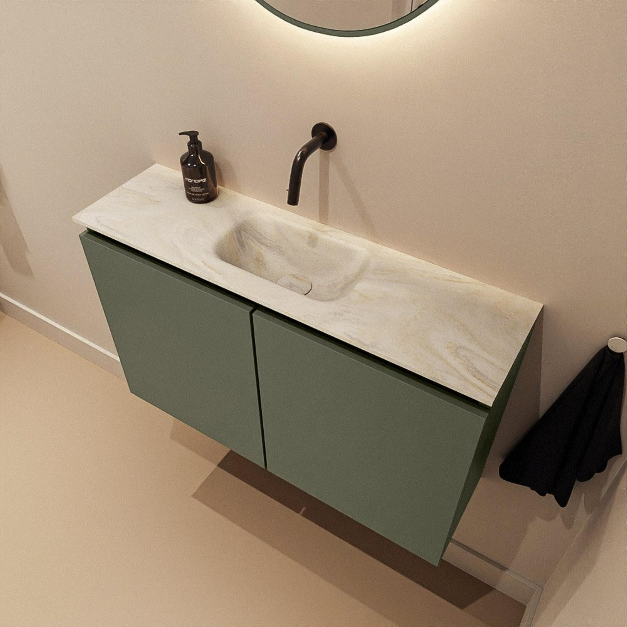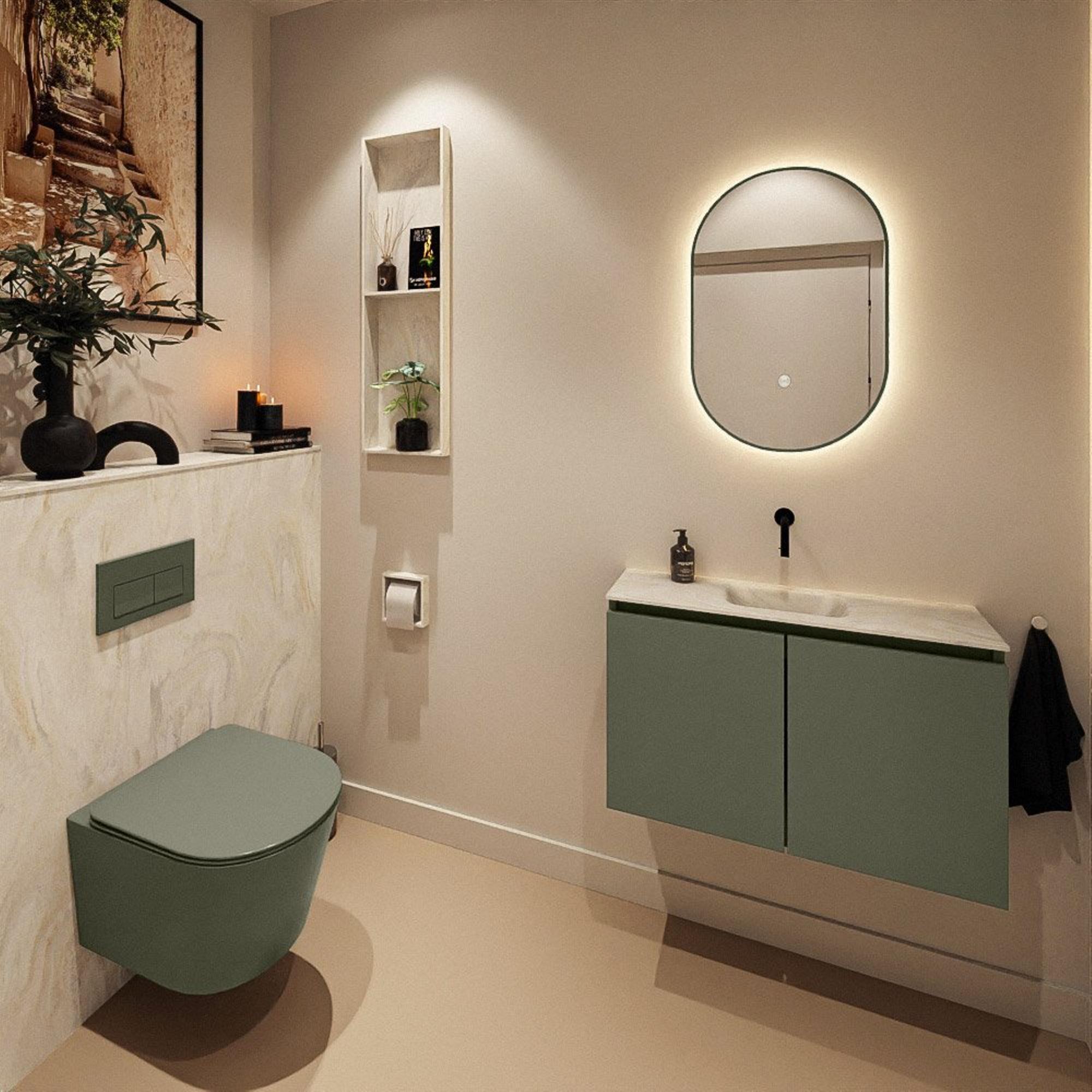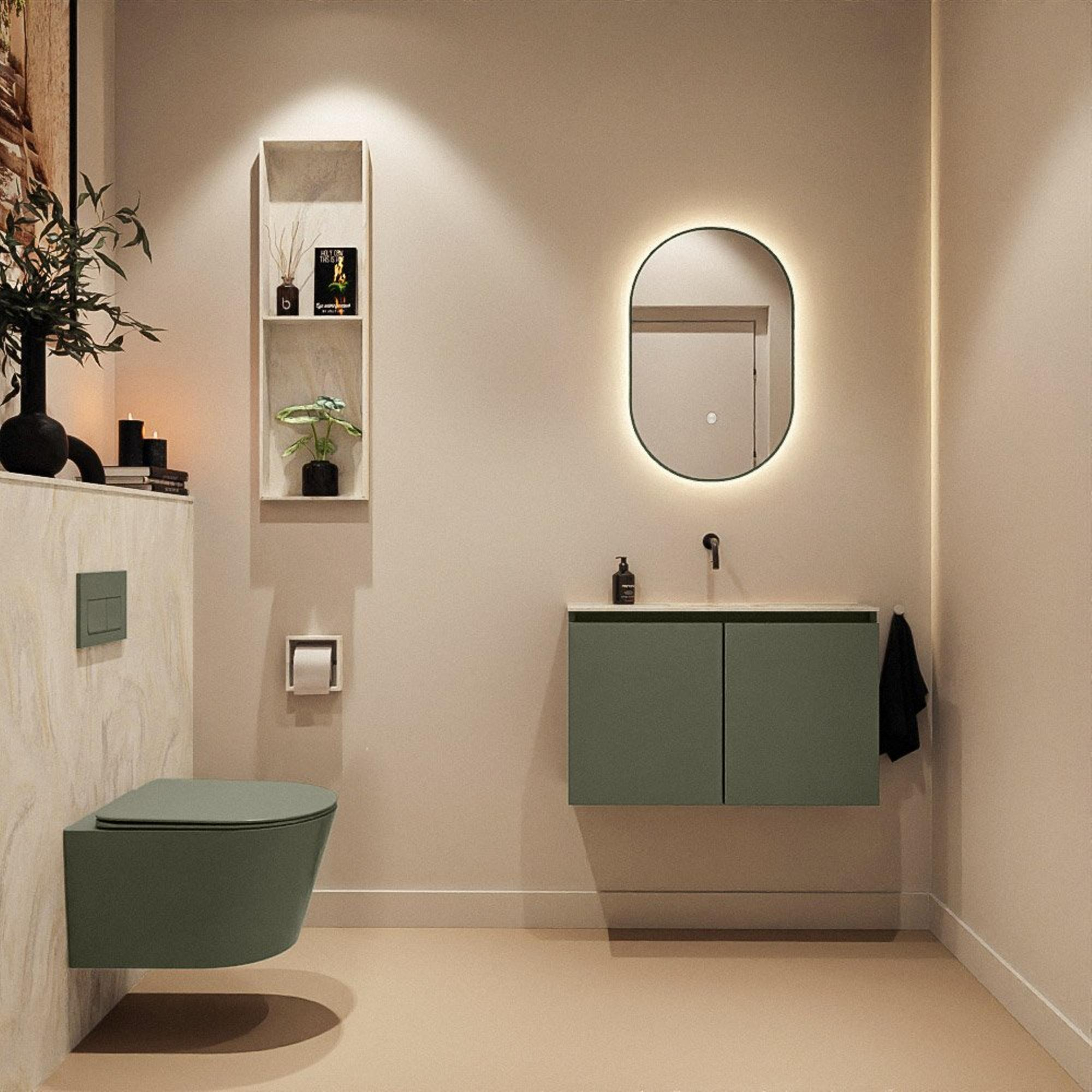 MONDIAZ TURE-DLUX 80cm toiletmeubel Army. EDEN wastafel Ostra positie midden. Zonder kraangat.